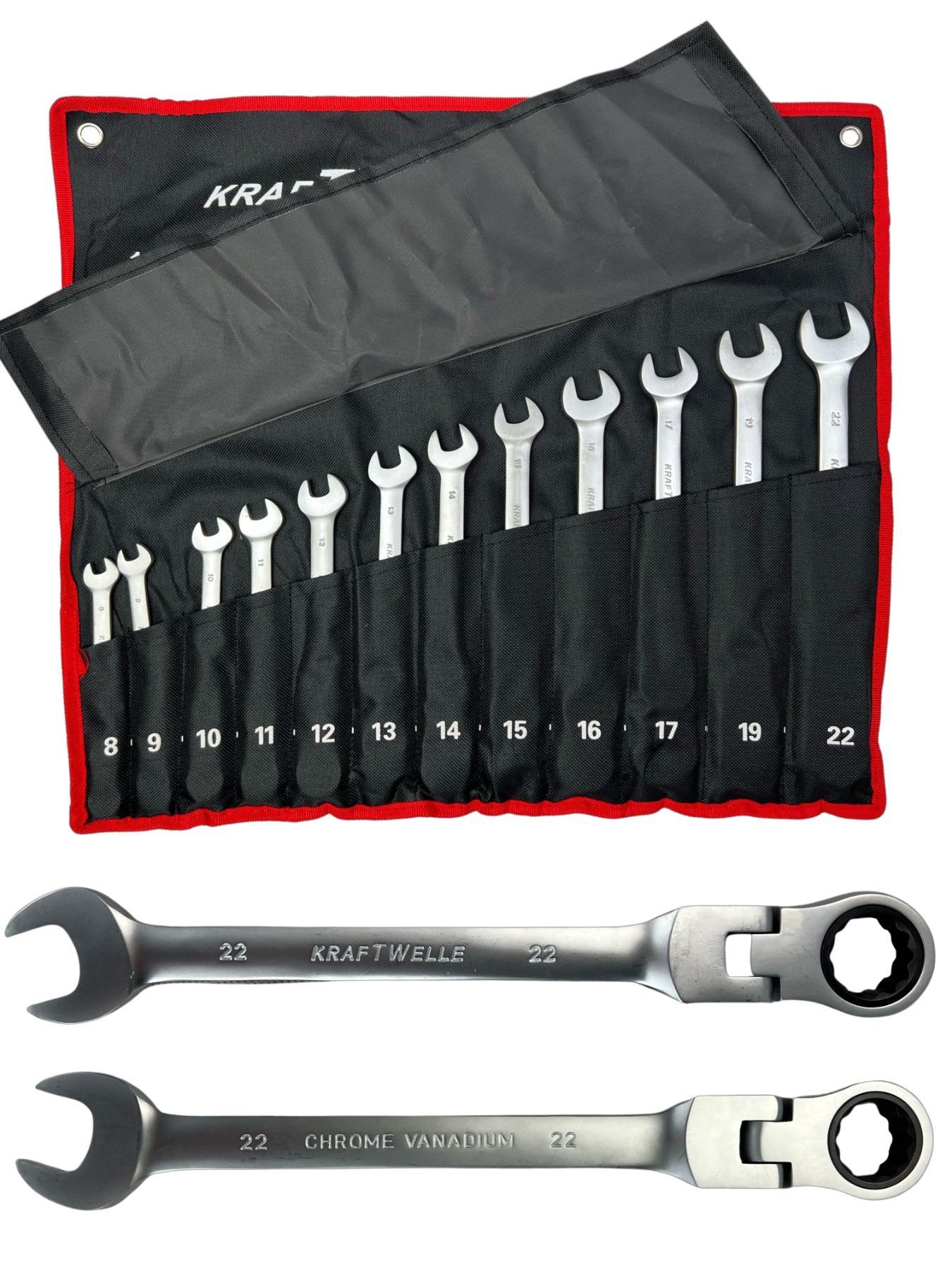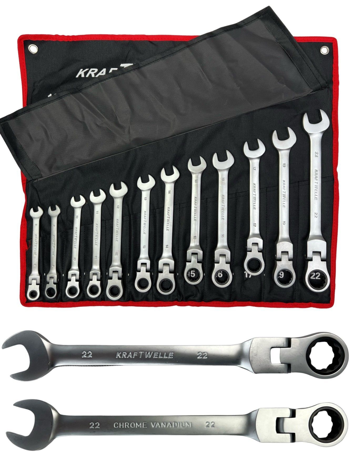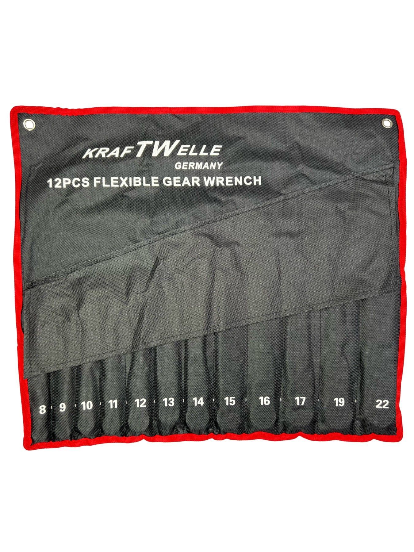Kraftwelle Gelenk Ratschenschlüssel 12 teilig 8mm - 22mm Ring Maul Schlüssel Flexibel