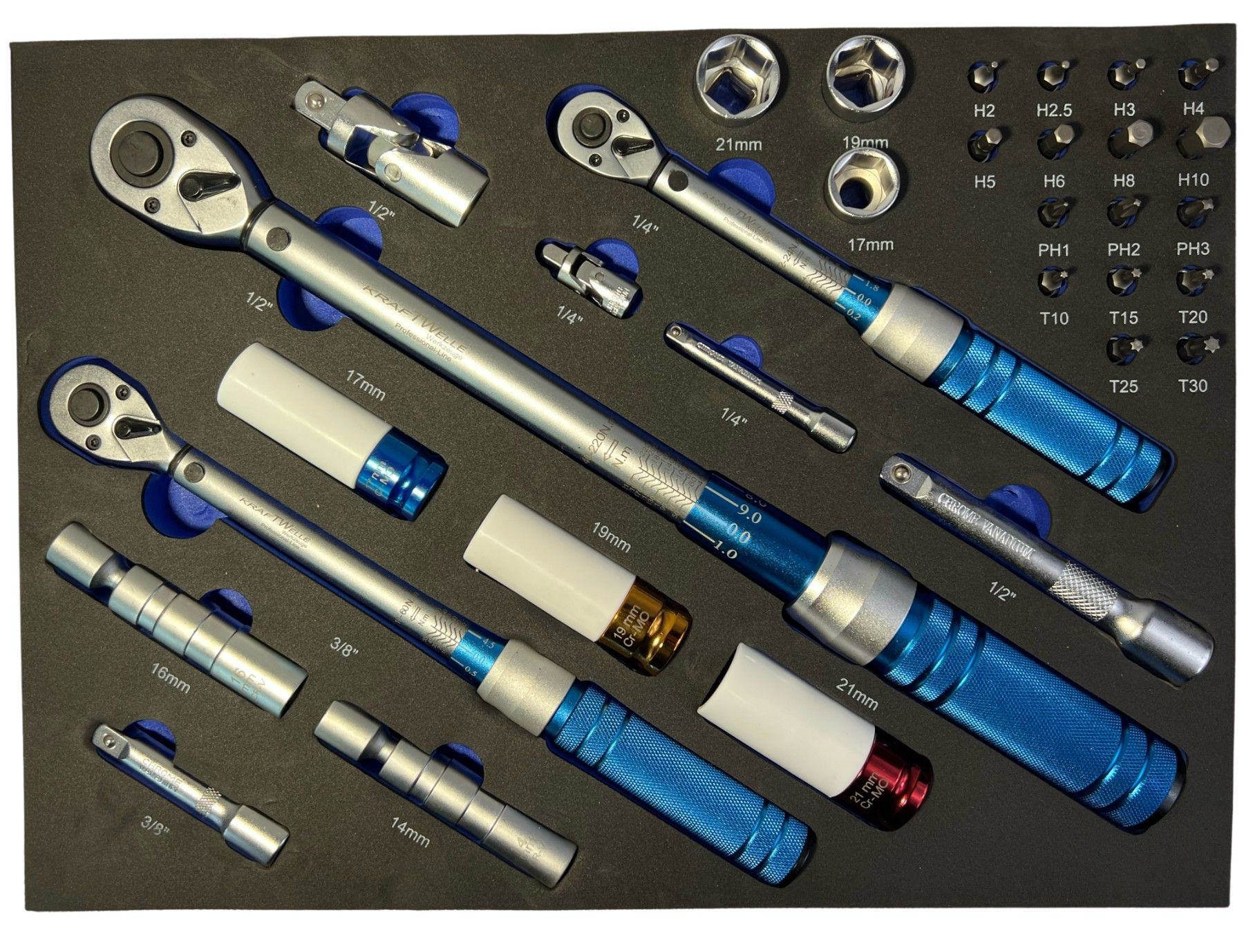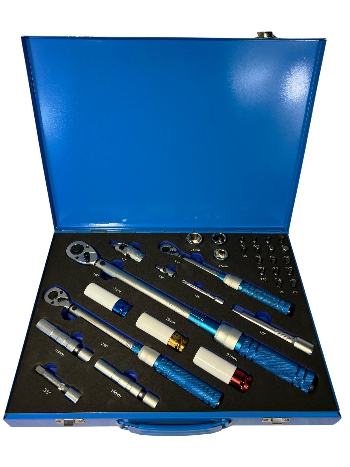 Kraftwelle Profi Drehmomentschlüssel Set 32 teilig 1/4 , 3/8, 1/2 Zoll Umschaltknarre