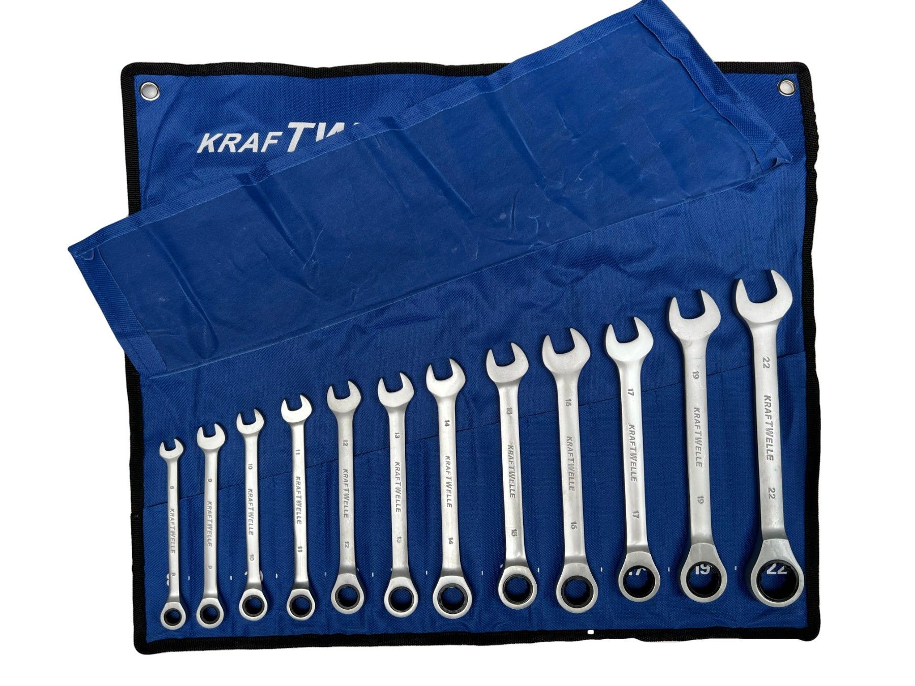 Kraftwelle Ratschenschlüssel 12 teilig 8mm - 22mm Ring Maul Schlüssel Ringratsche
