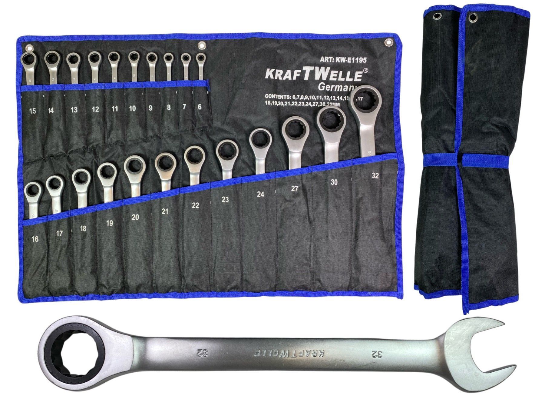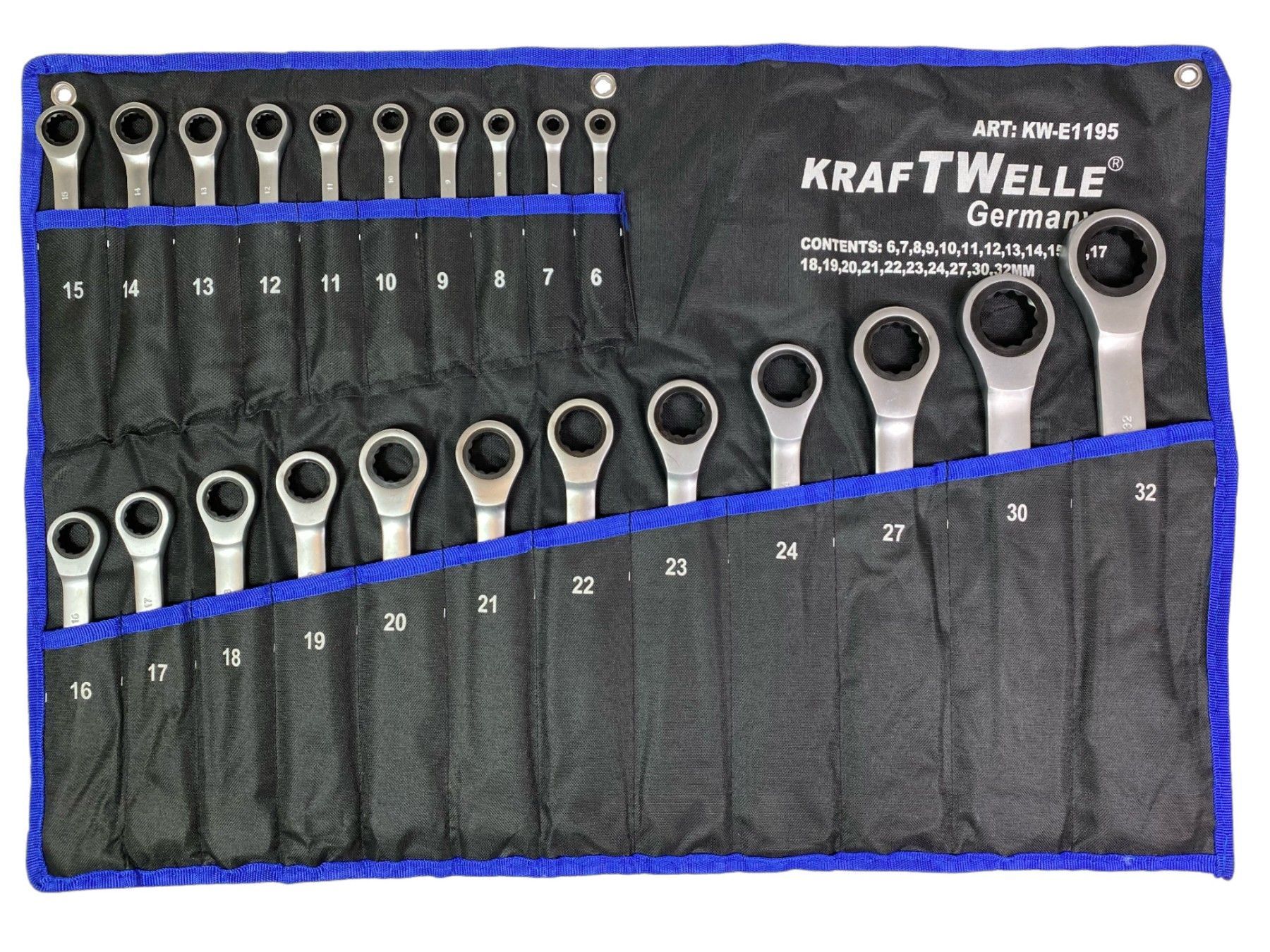 Kraftwelle Ringratschenschlüssel 22-teilig 6mm-32mm Gabelschlüssel mit Ratsche