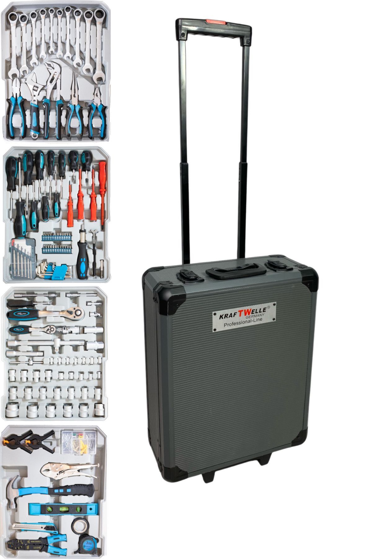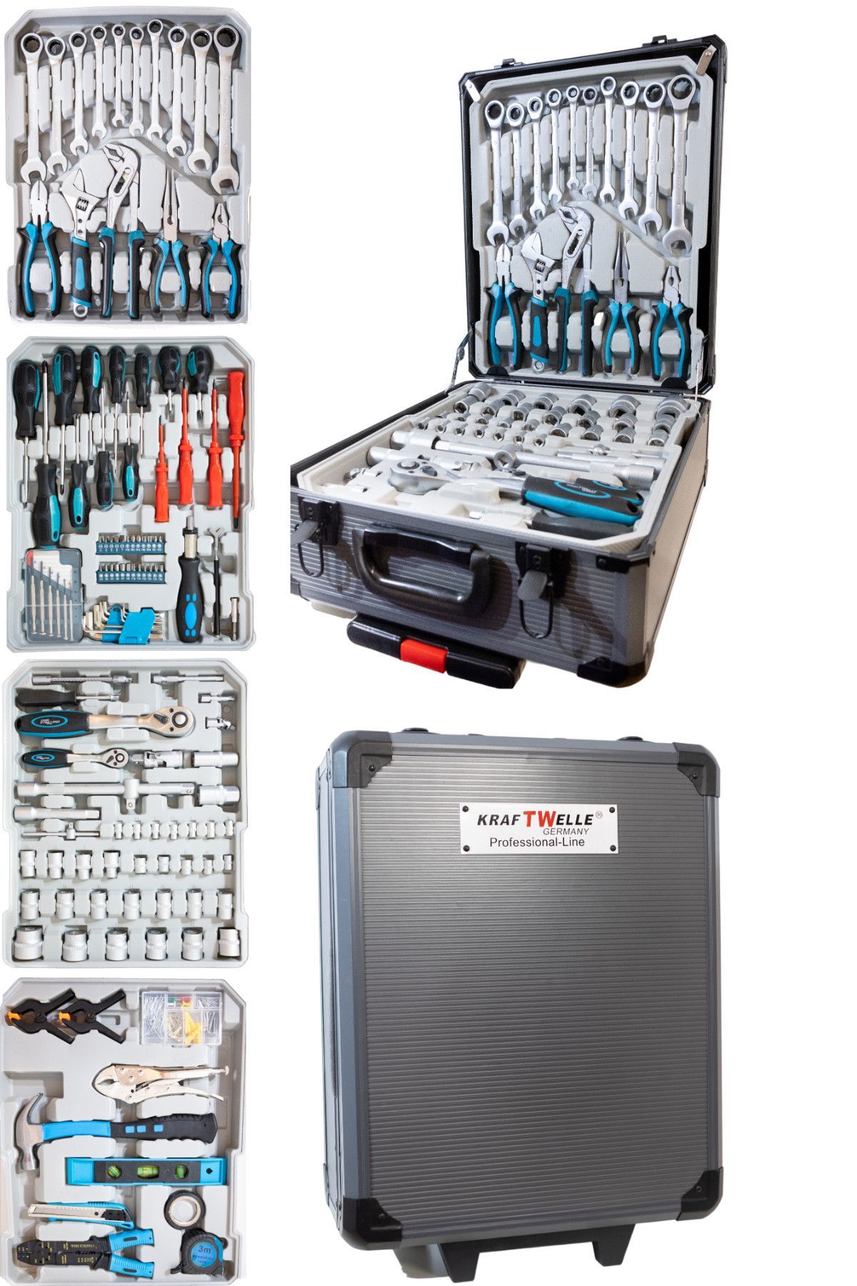 Kraftwelle Werkzeugkoffer mit 188 Teilen Chrome Vanadium Werkzeug im Alu Koffer