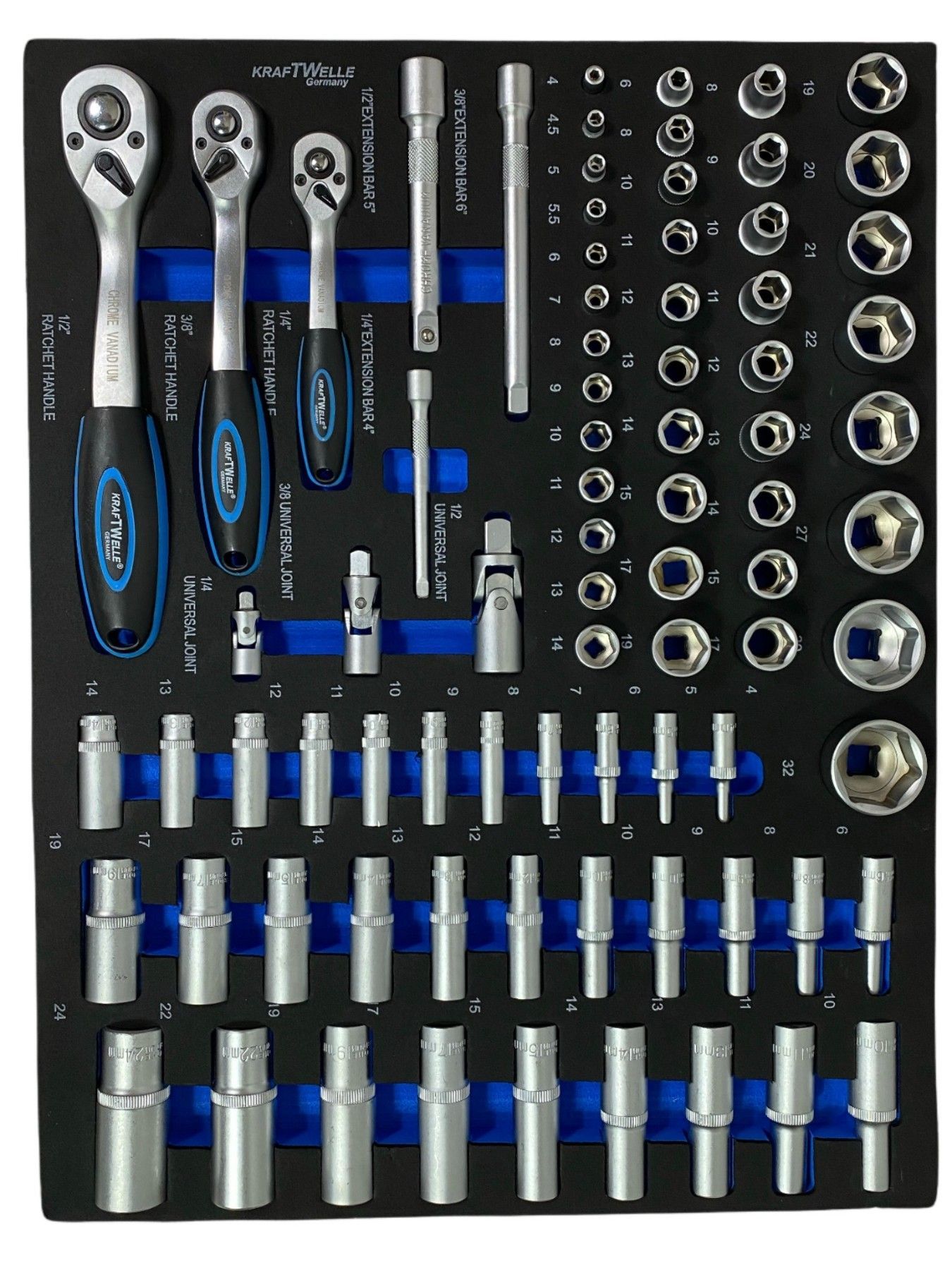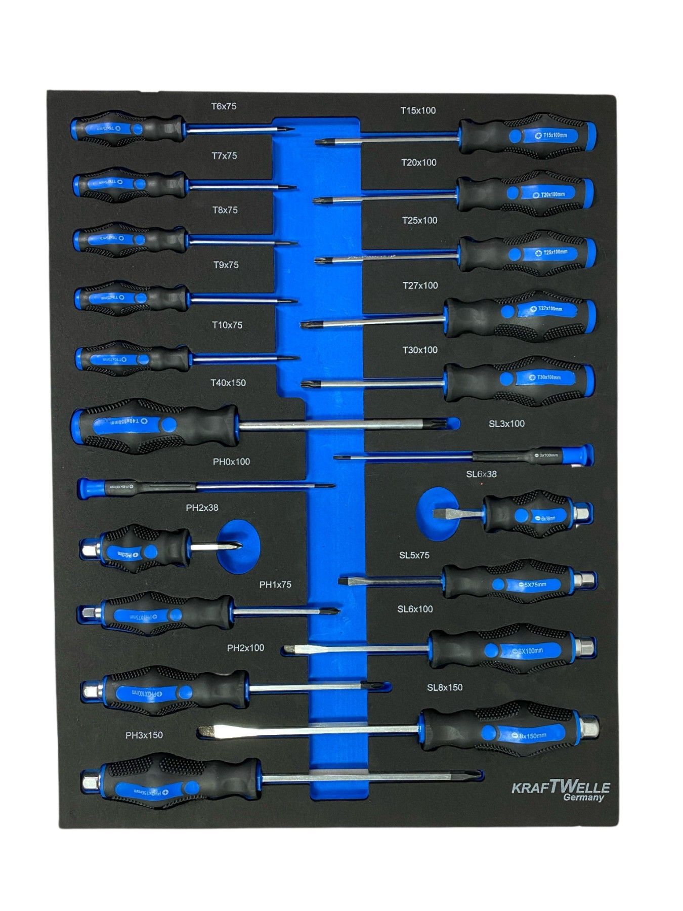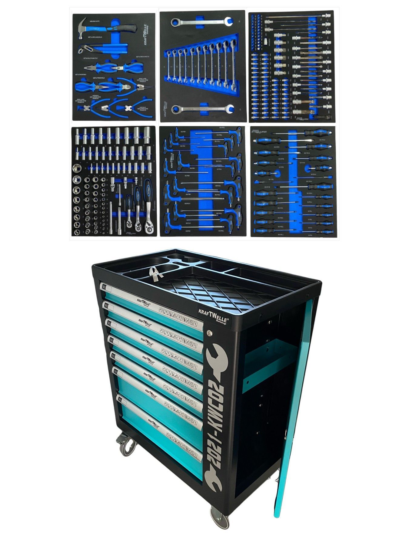 Kraftwelle Werkzeugwagen blau Werkstattwagen Modell C02 Blau 6/7 Schubläden befüllt