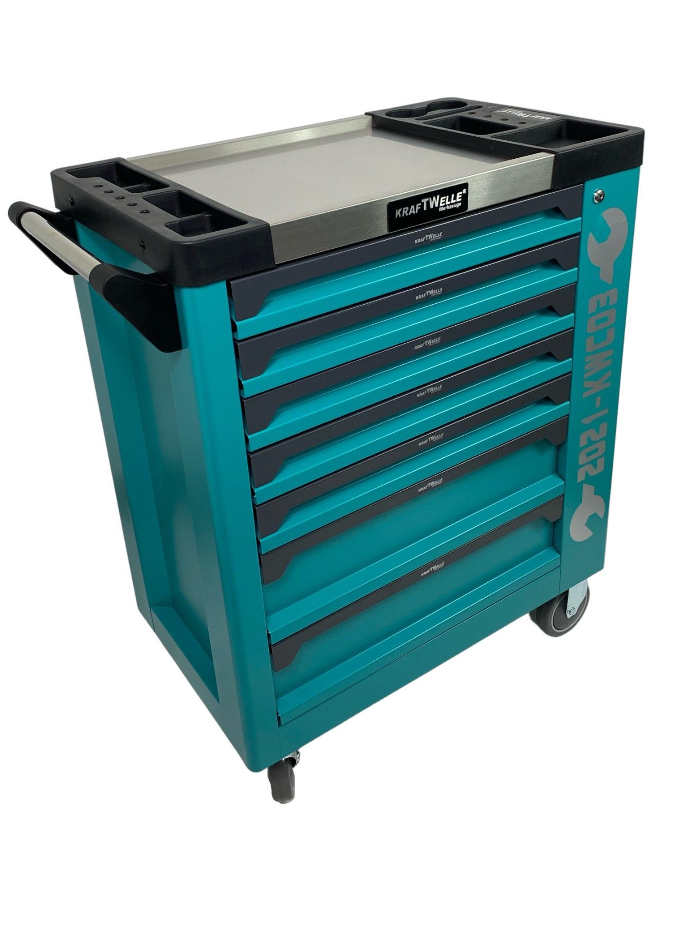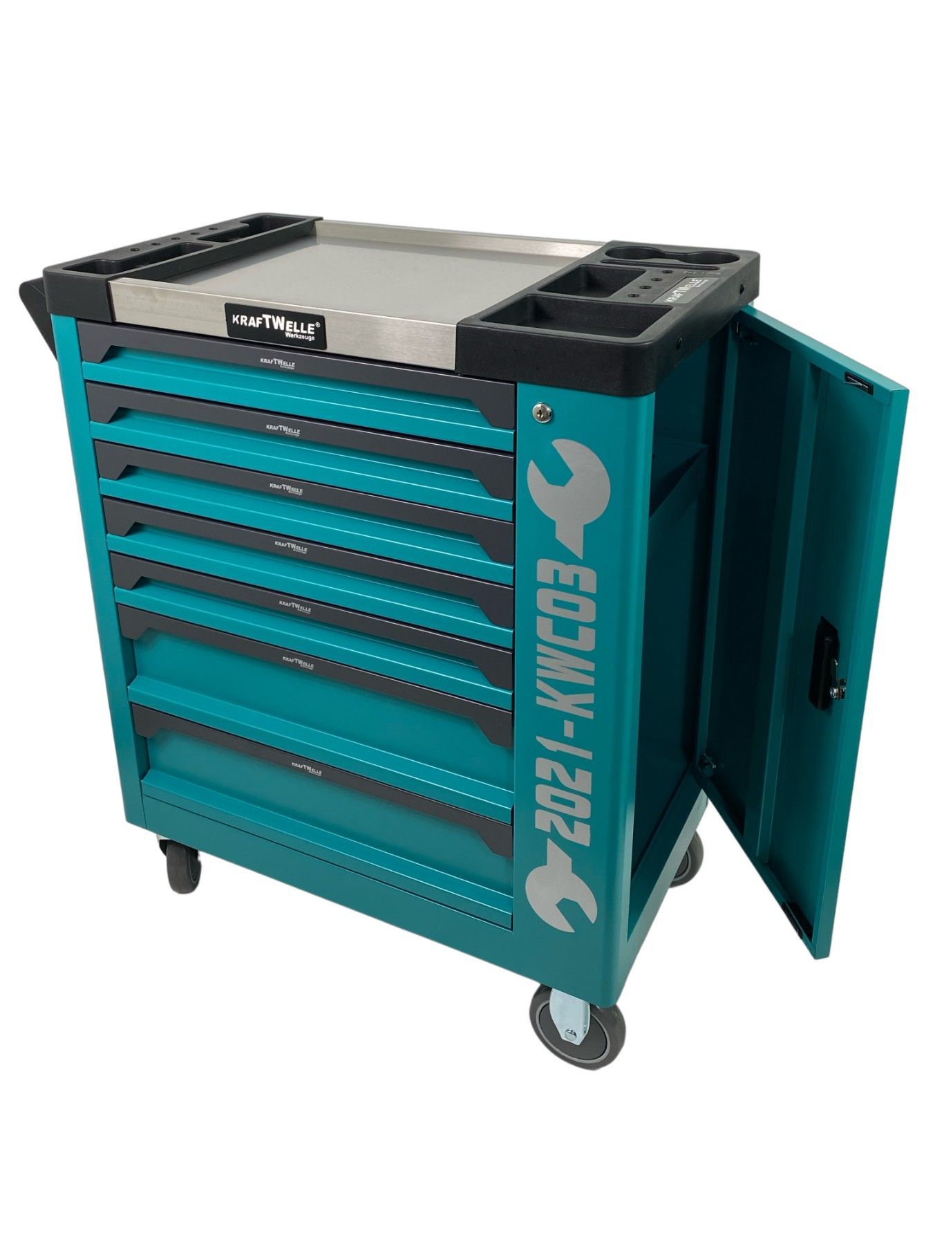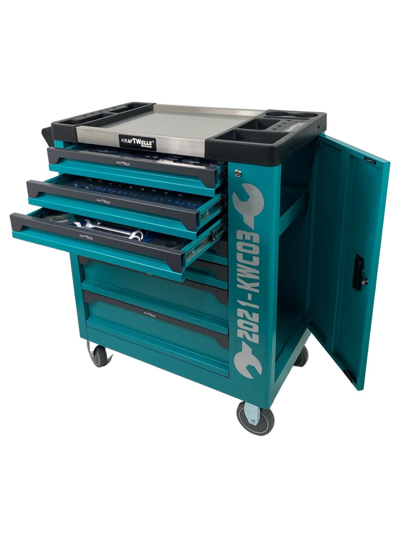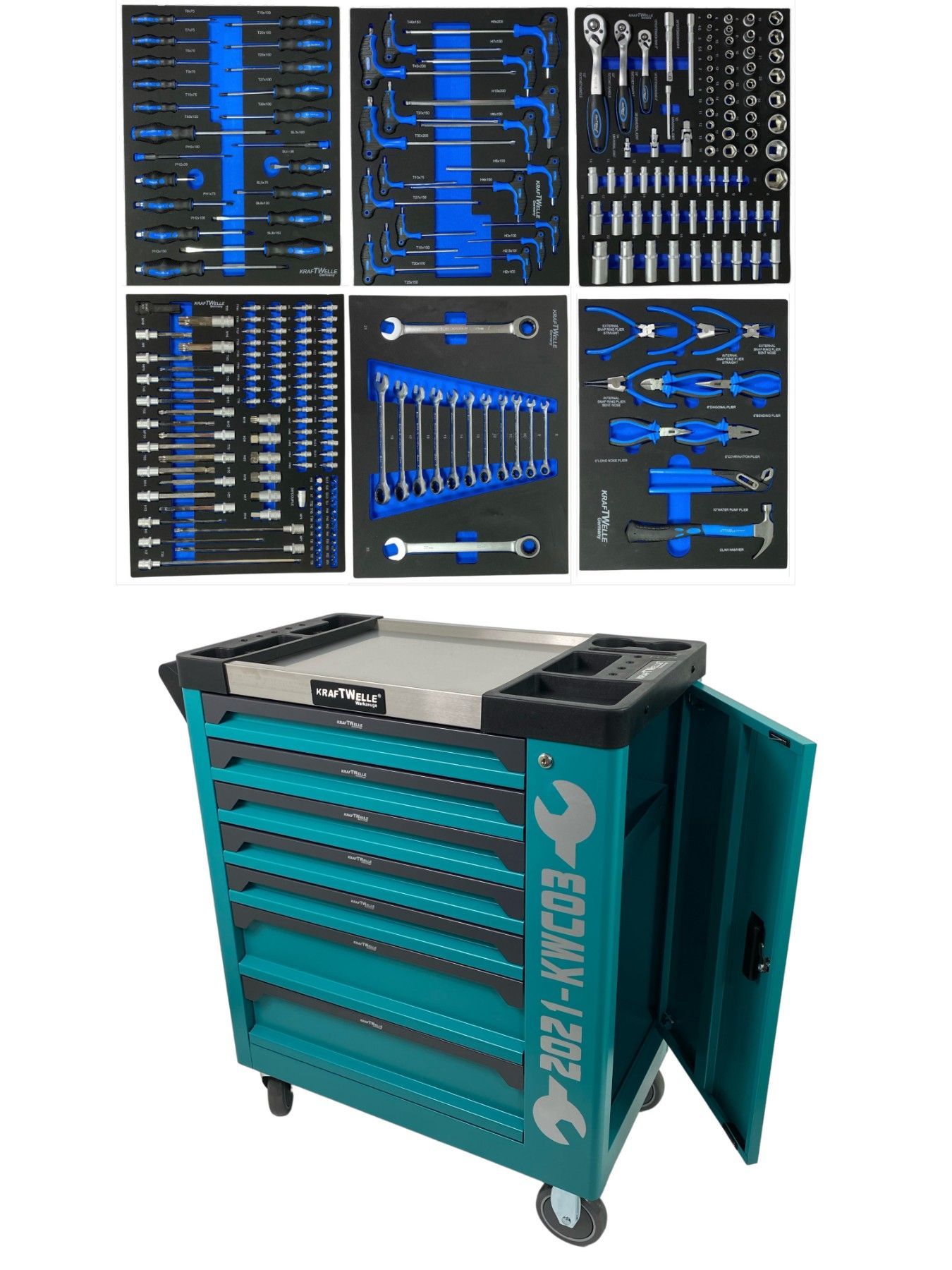 Kraftwelle Werkzeugwagen blau Werkstattwagen Modell C03 Blau 6/7 Schubläden befüllt