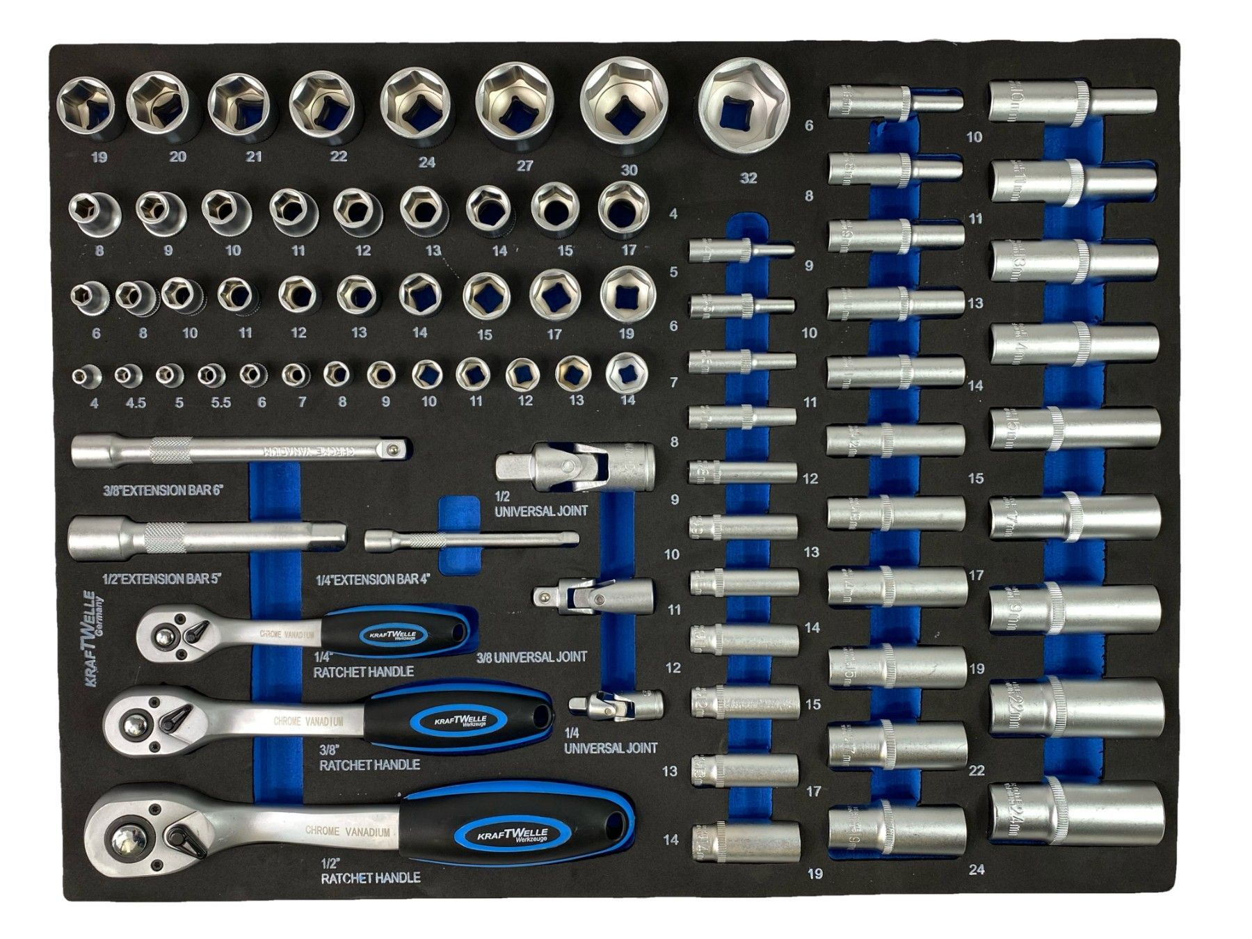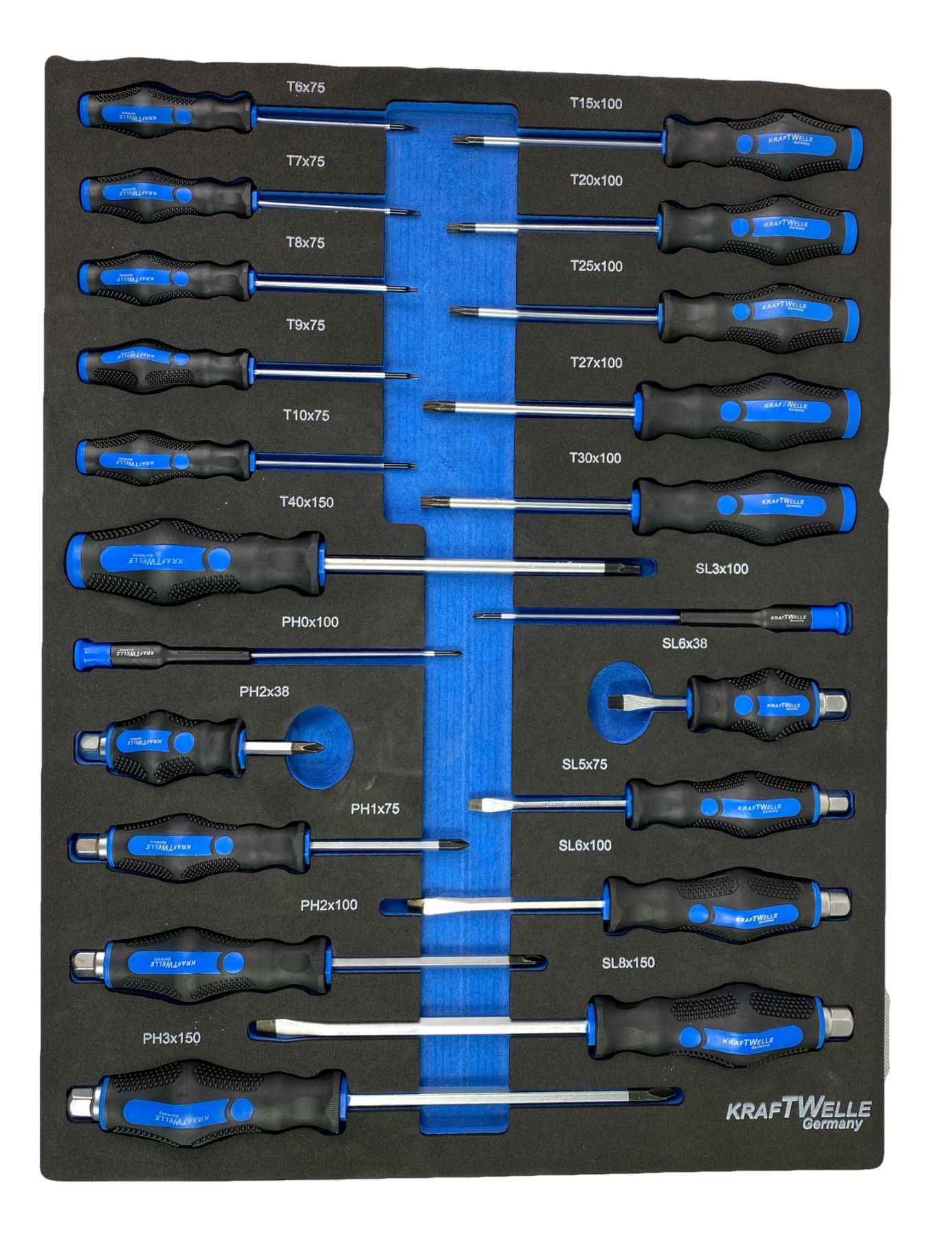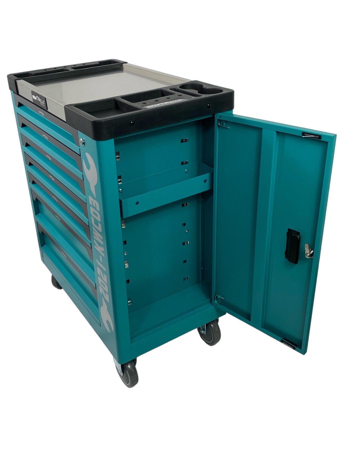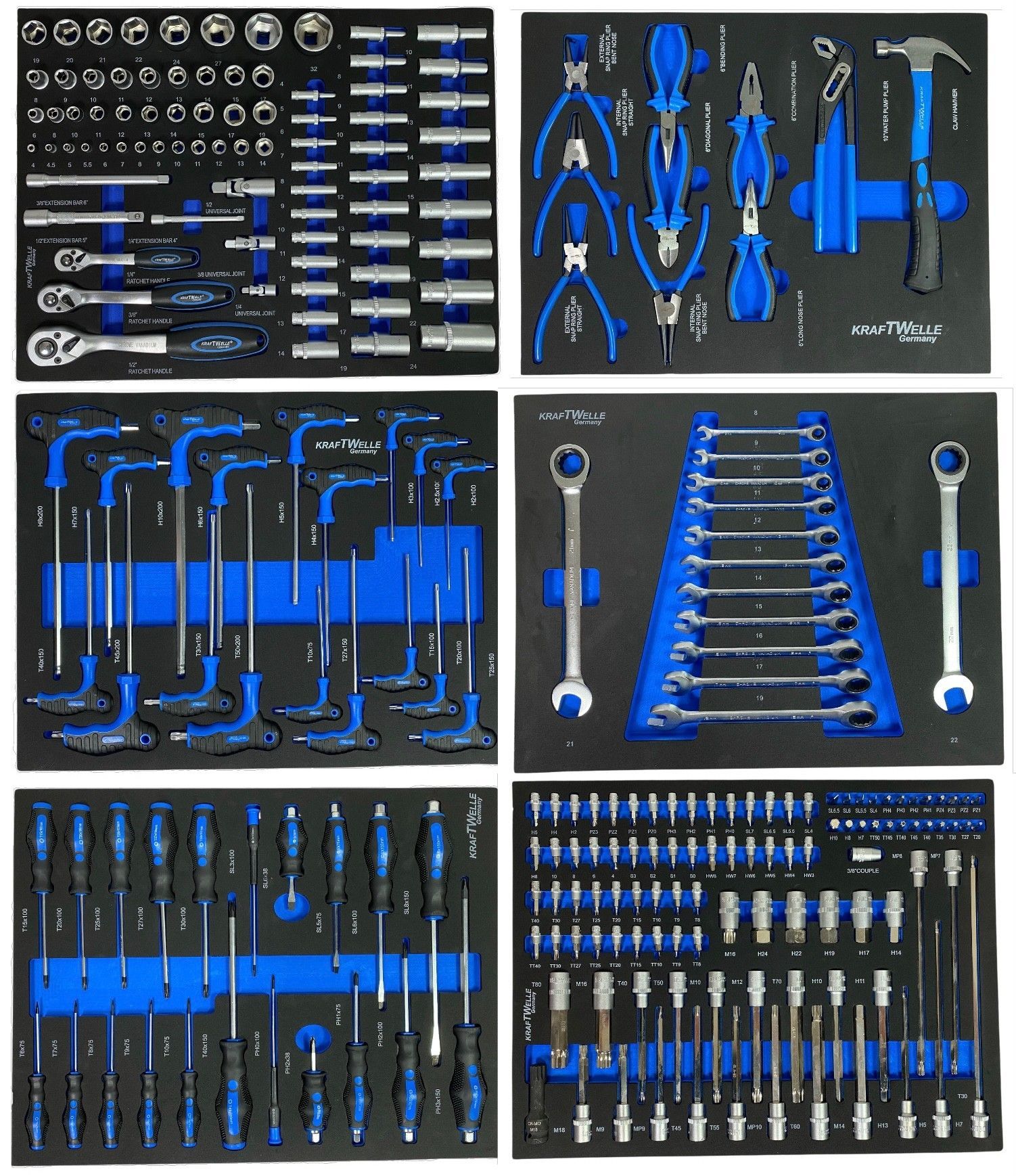 Kraftwelle Werkzeugwagen blau Werkstattwagen Modell C03 Blau 6/7 Schubläden befüllt