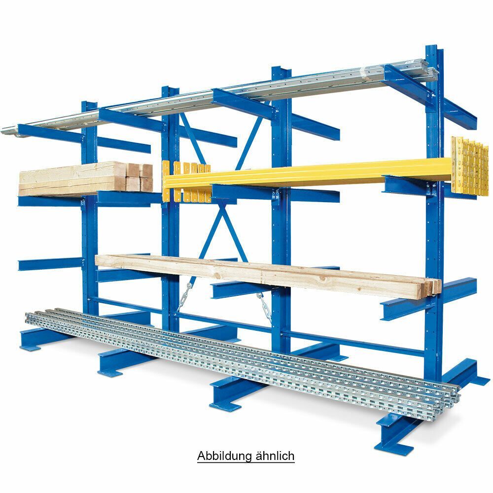 Kragarmregal, BxTxH 3100x1340x3000 mm, doppelseitig, 3 Regalfelder, 12 Ebenen