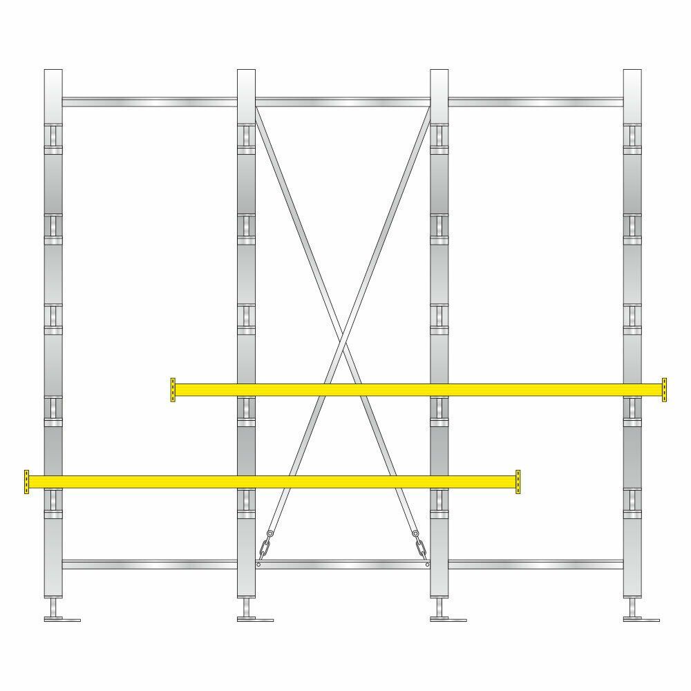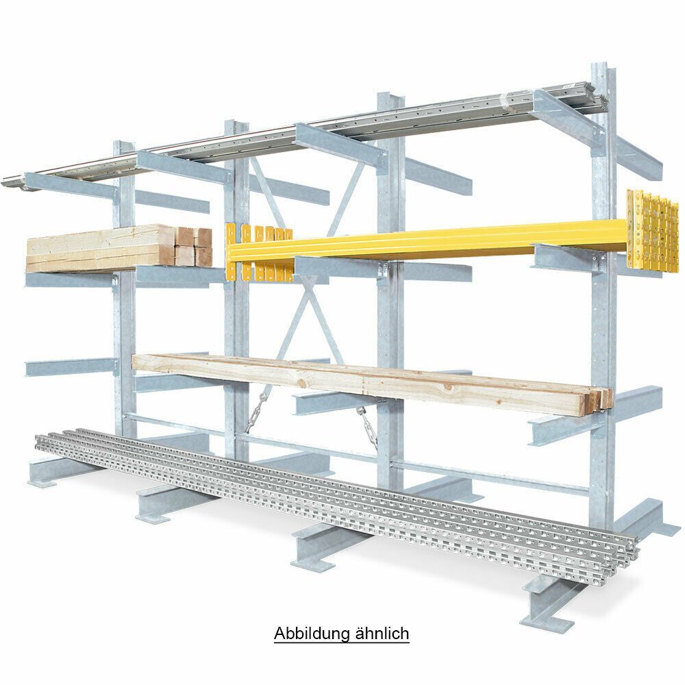 Kragarmregal verzinkt, BxTxH 3100x1340x2500 mm, doppelseitig, 3 Felder,12 Ebenen