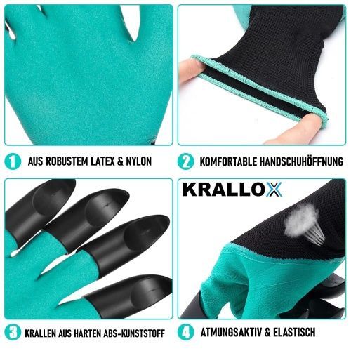 Krallox Gartenhandschuhe mit Krallen Krallenhandschuhe zum Graben Universalgröße