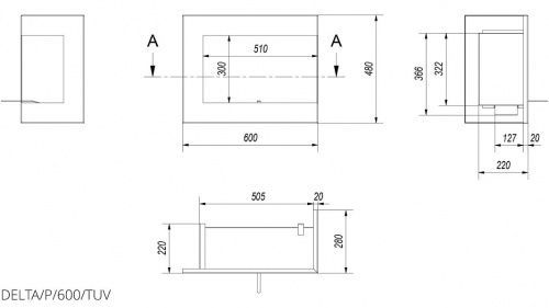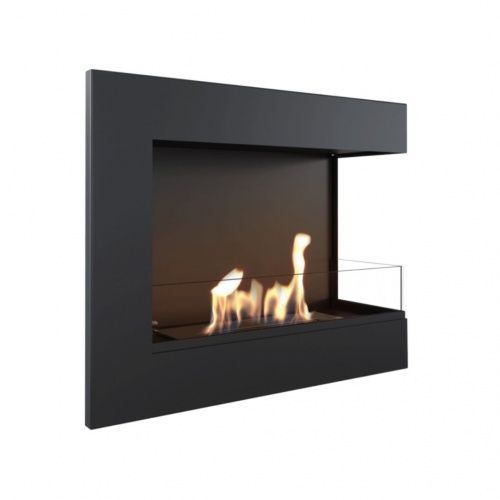 Kratki Bioethanolkamin DELTA 600 rechts schwarz mit Verglasung Wandkamin Biokamin