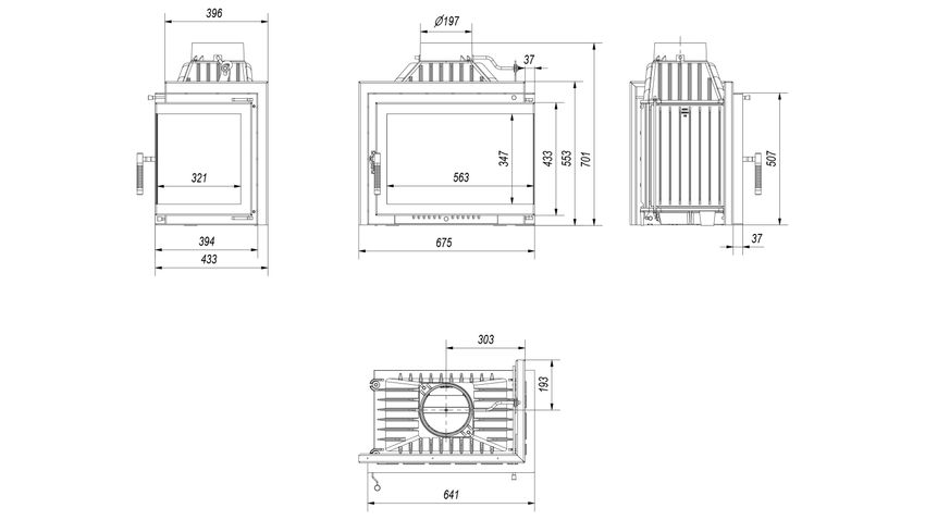 Kratki Kamineinsatz Gusseisen Simple rechts 8 kW Ø 200 Ecodesign BImSchV 2