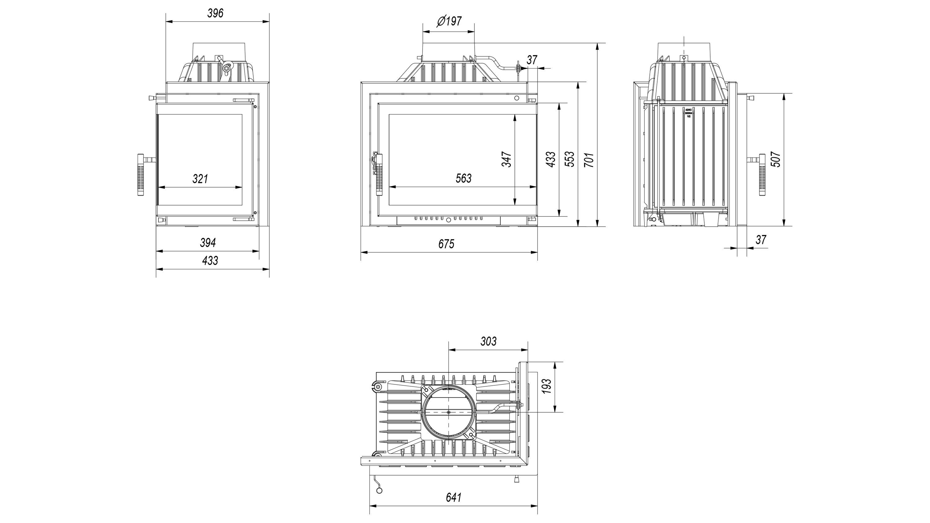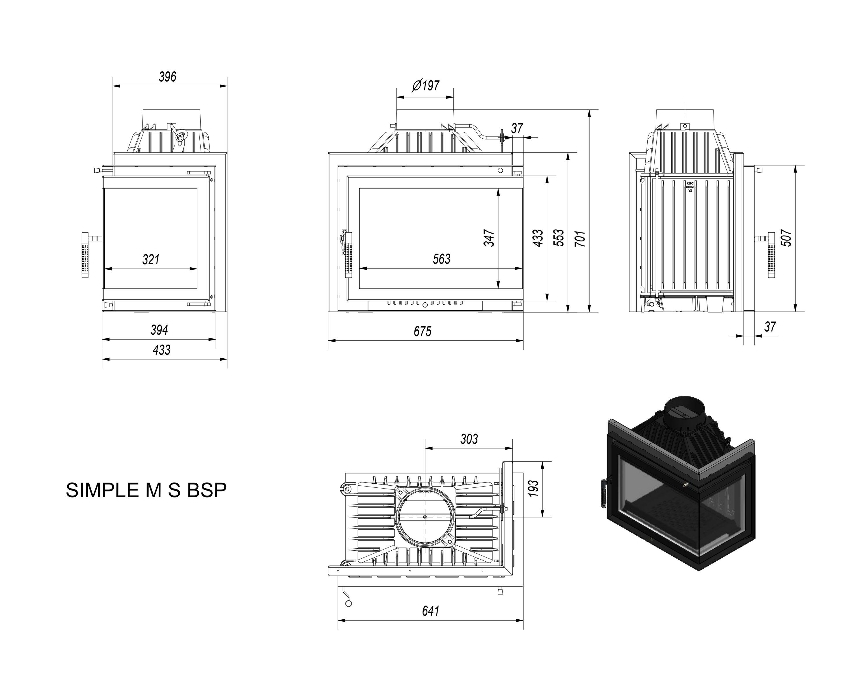 Kratki Kamineinsatz Gusseisen Simple rechts 8 kW Ø 200 Satz BImSchV 2 EEK A