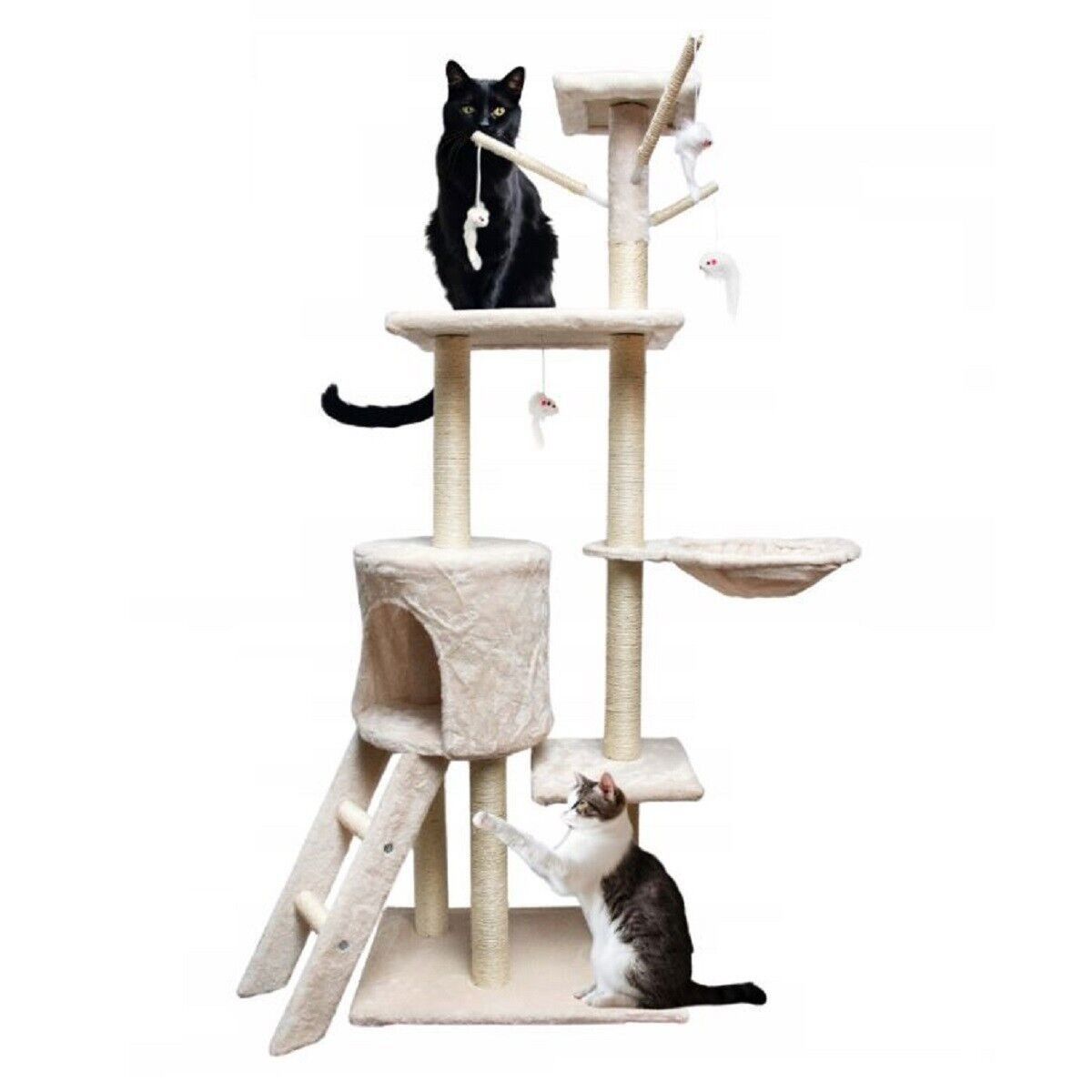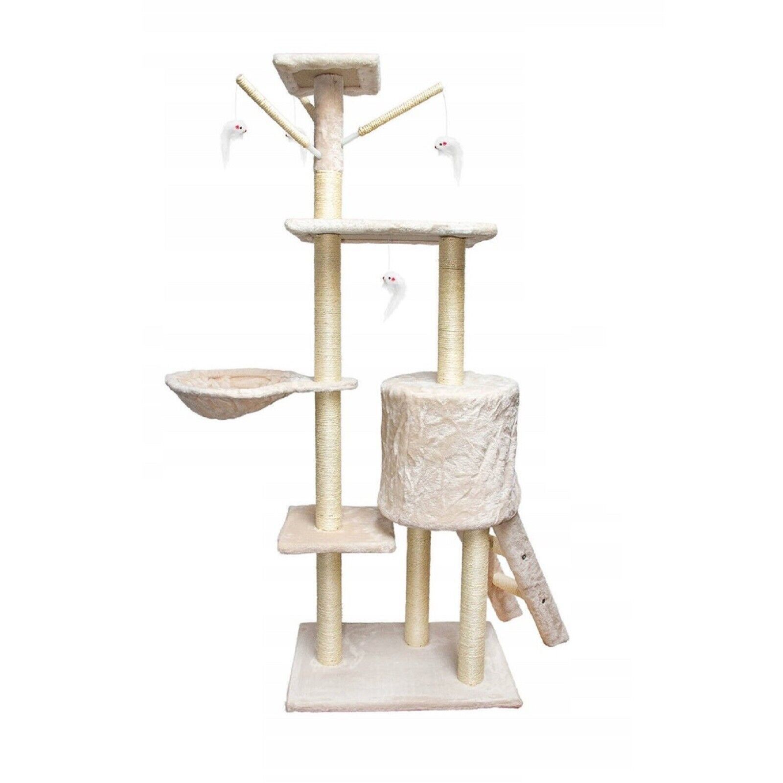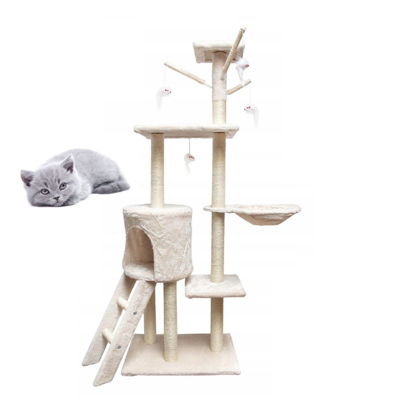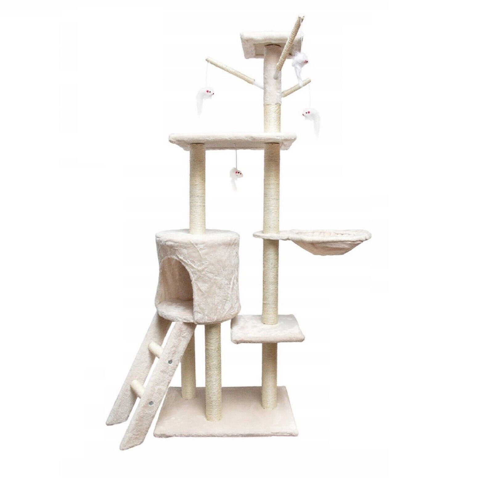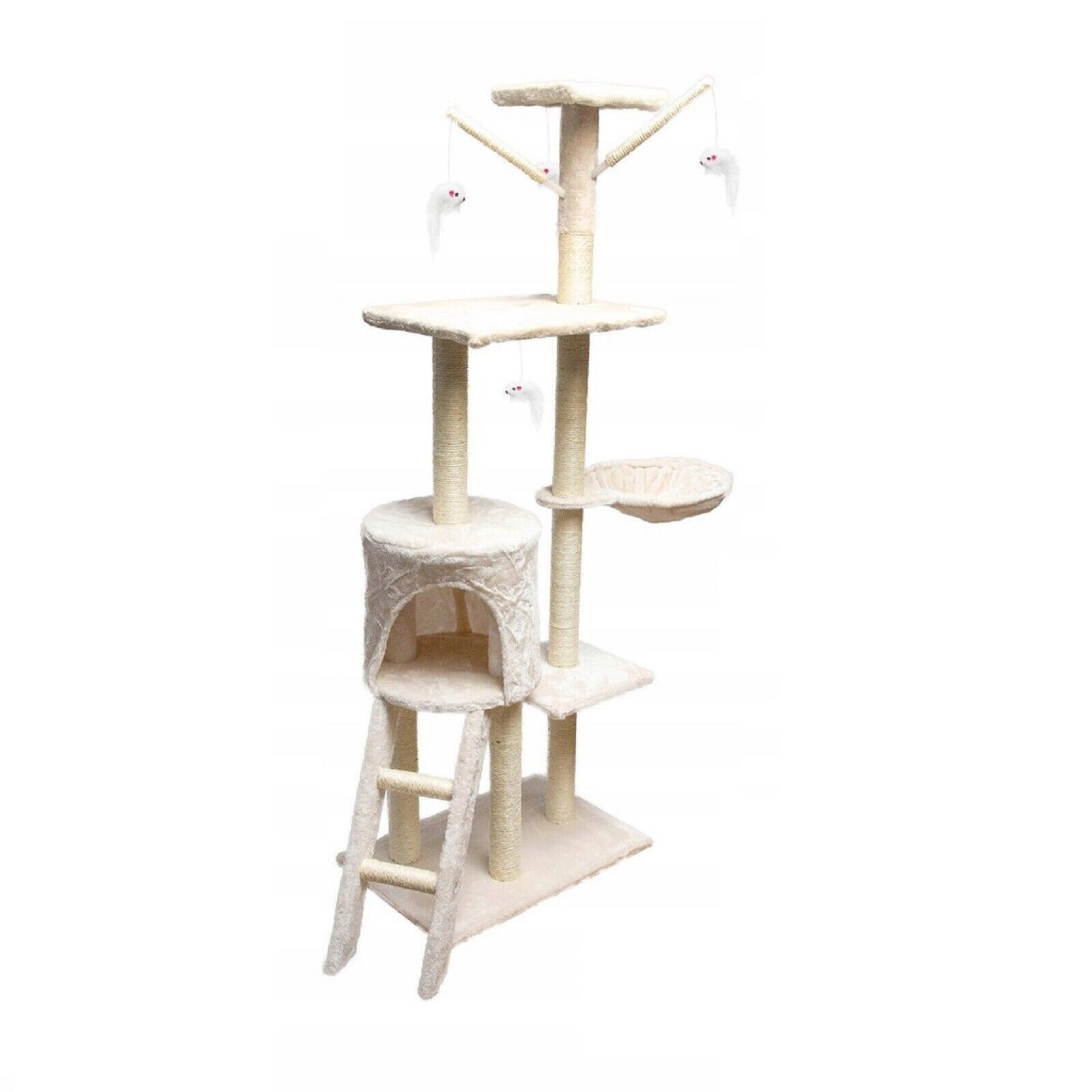 QLS Kratzbaum 150cm hoch Katzenbaum Katzenkletterbaum Kletterturm Katzenhöhle Beige 10930