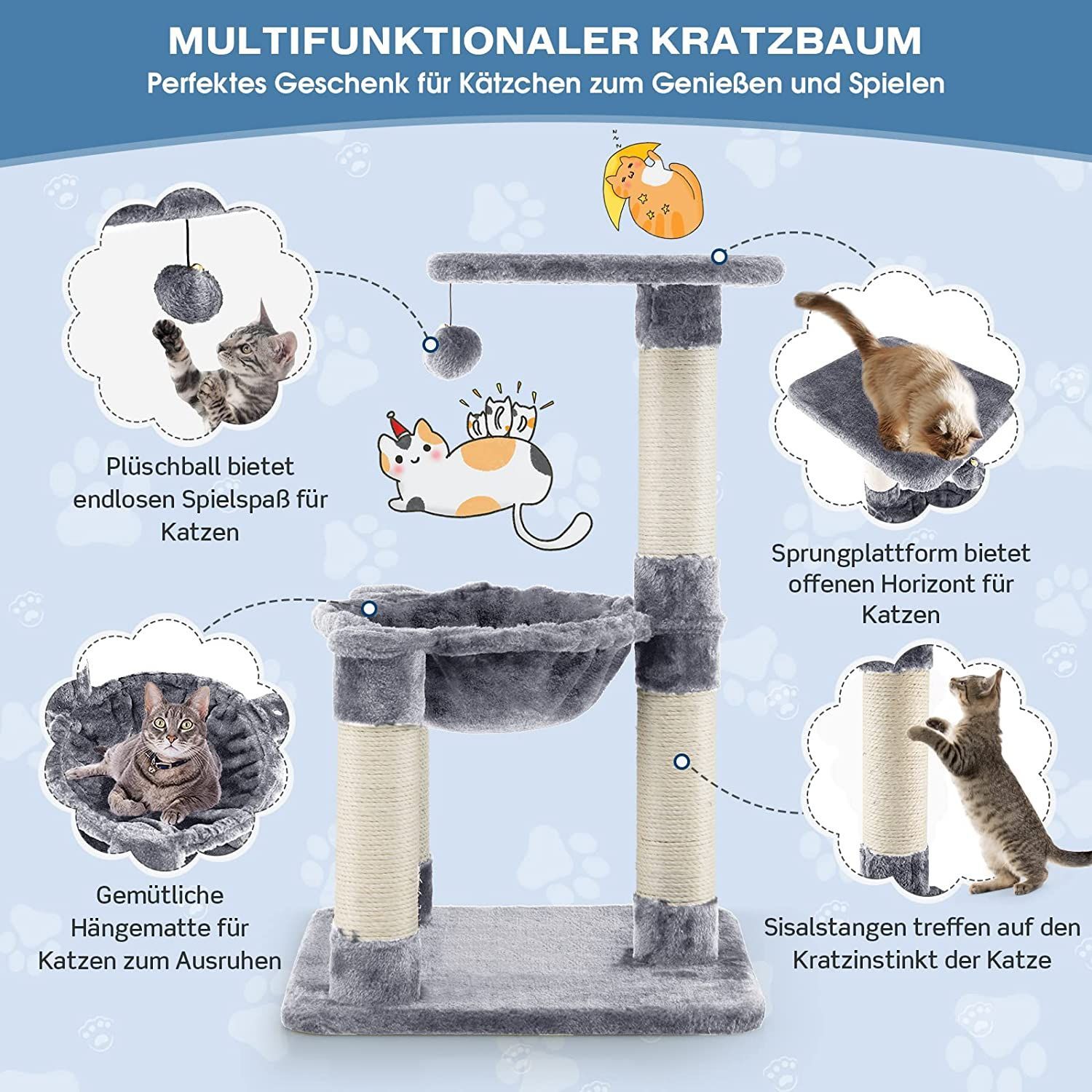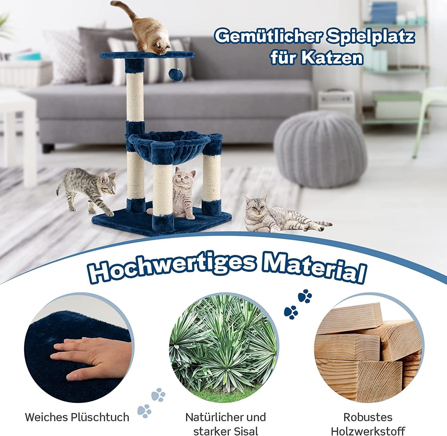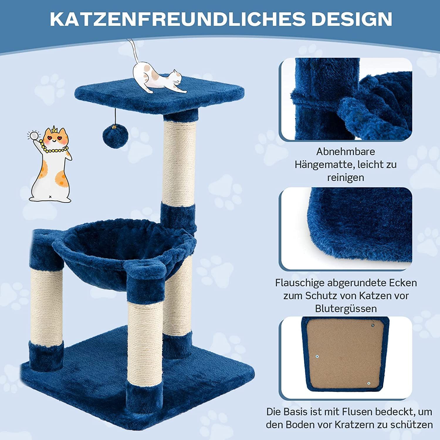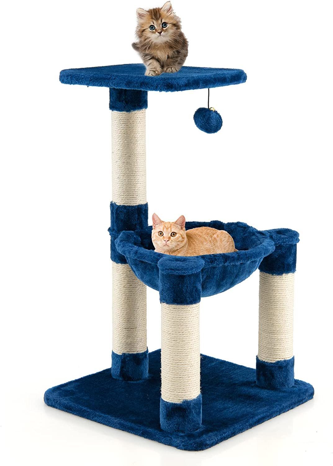 Kratzbaum Klein, Katzenbaum mit gemütlicher Hängematte, großem Plattform & Fellknäuel