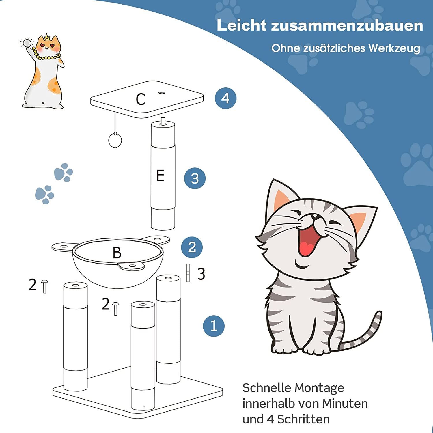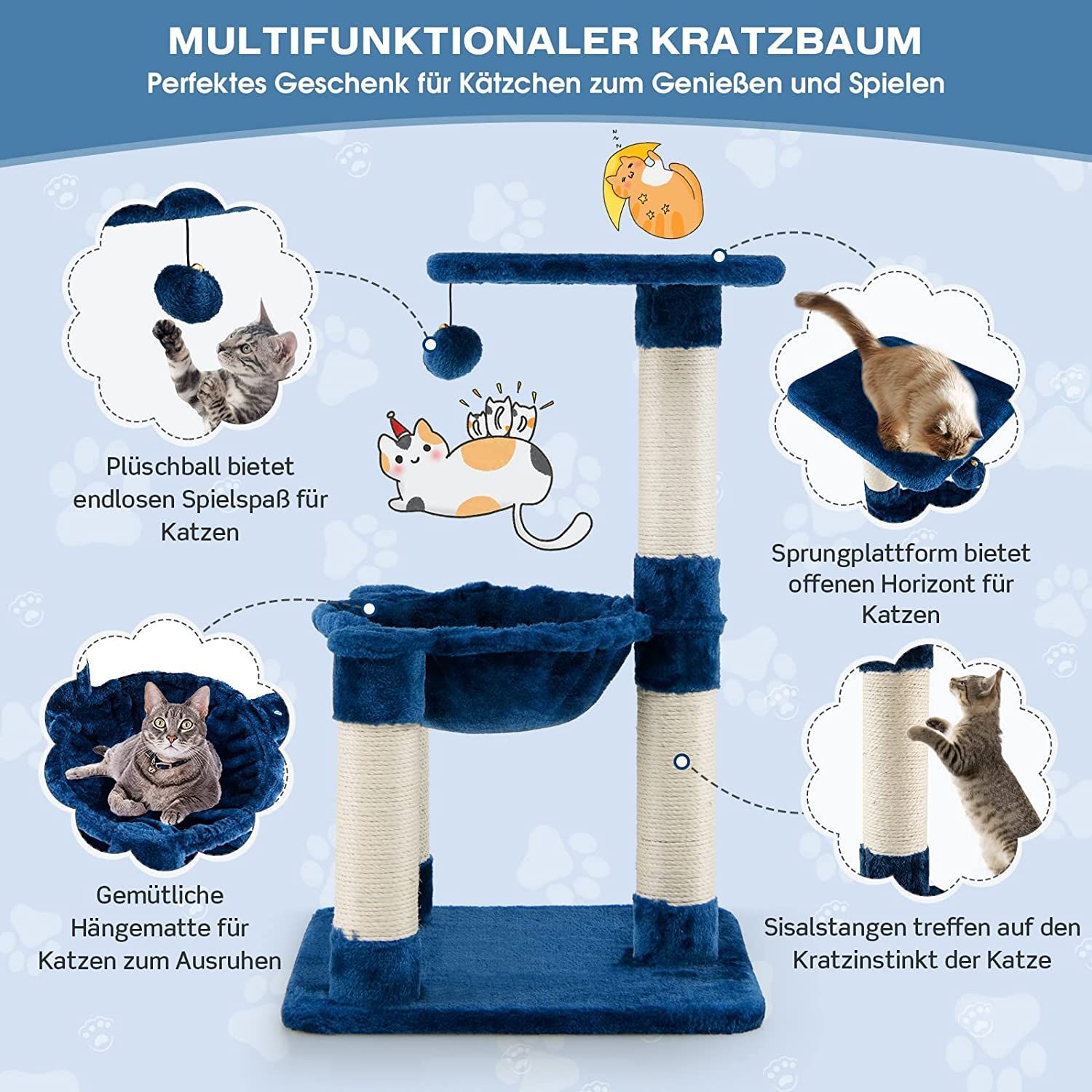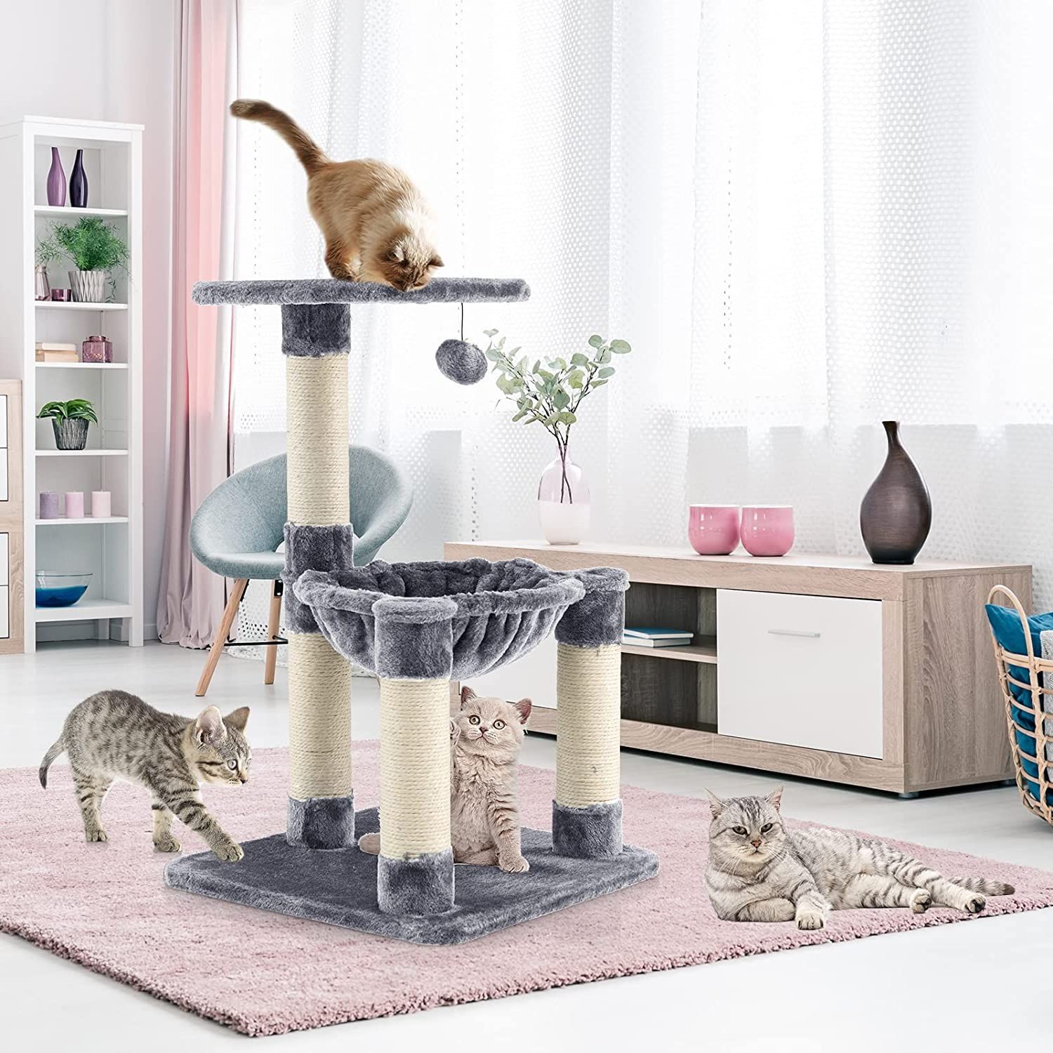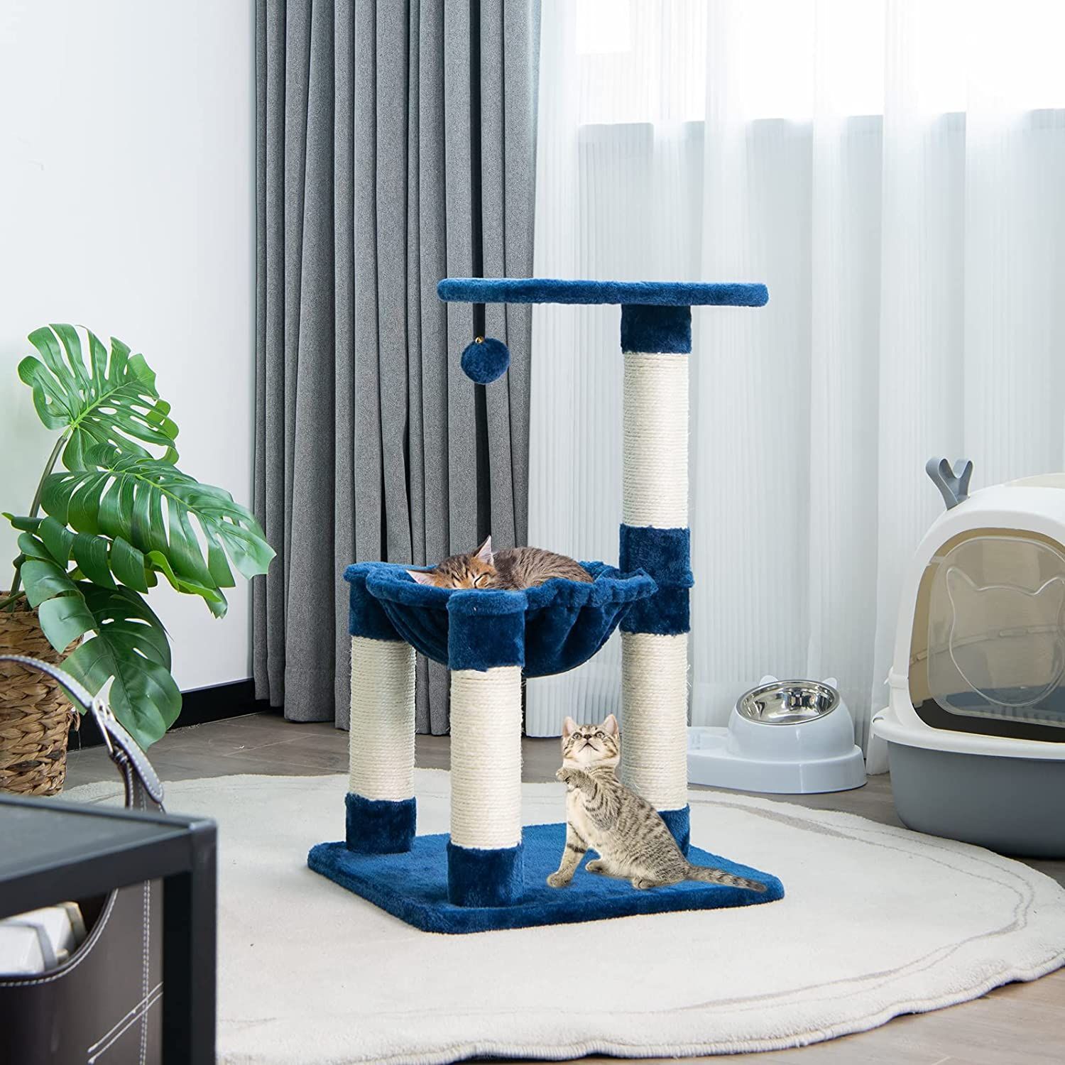 Kratzbaum Klein, Katzenbaum mit gemütlicher Hängematte, großem Plattform & Fellknäuel