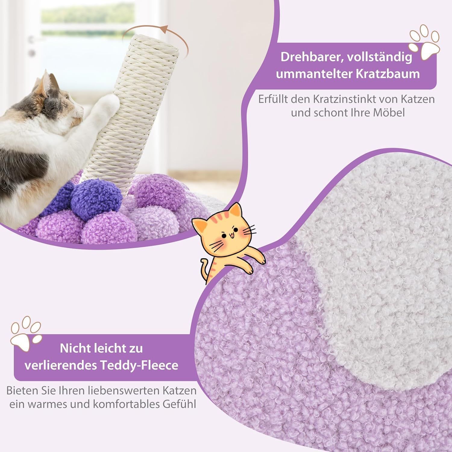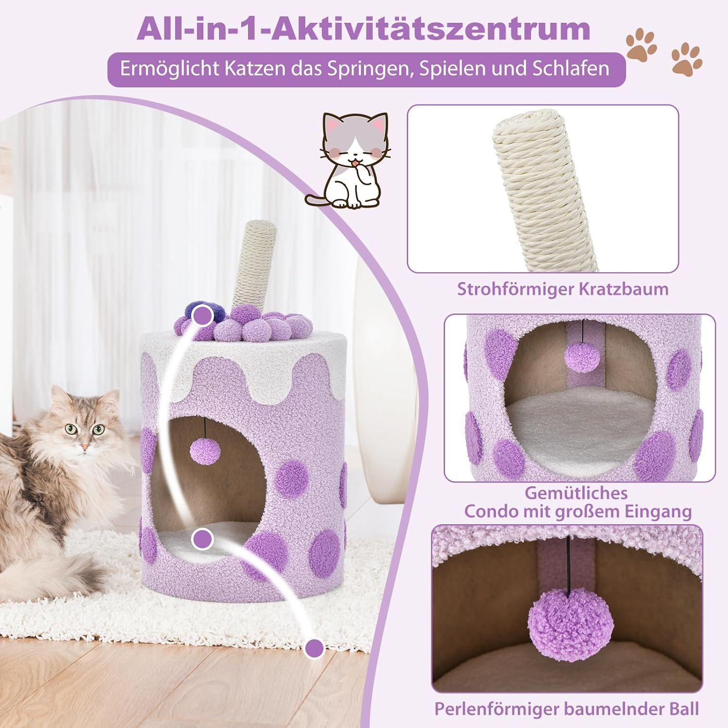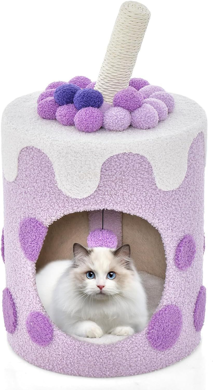 Kratzbaum Kratztonne, Niedliche Milchteeform, Katzenbaum mit Sisalpfosten