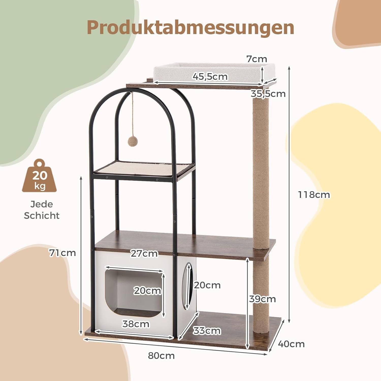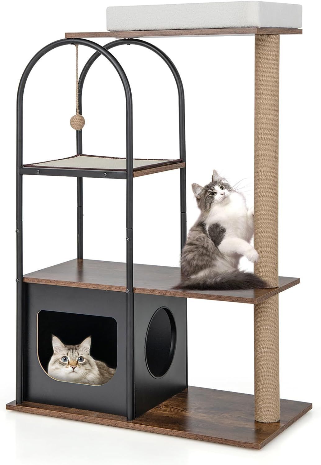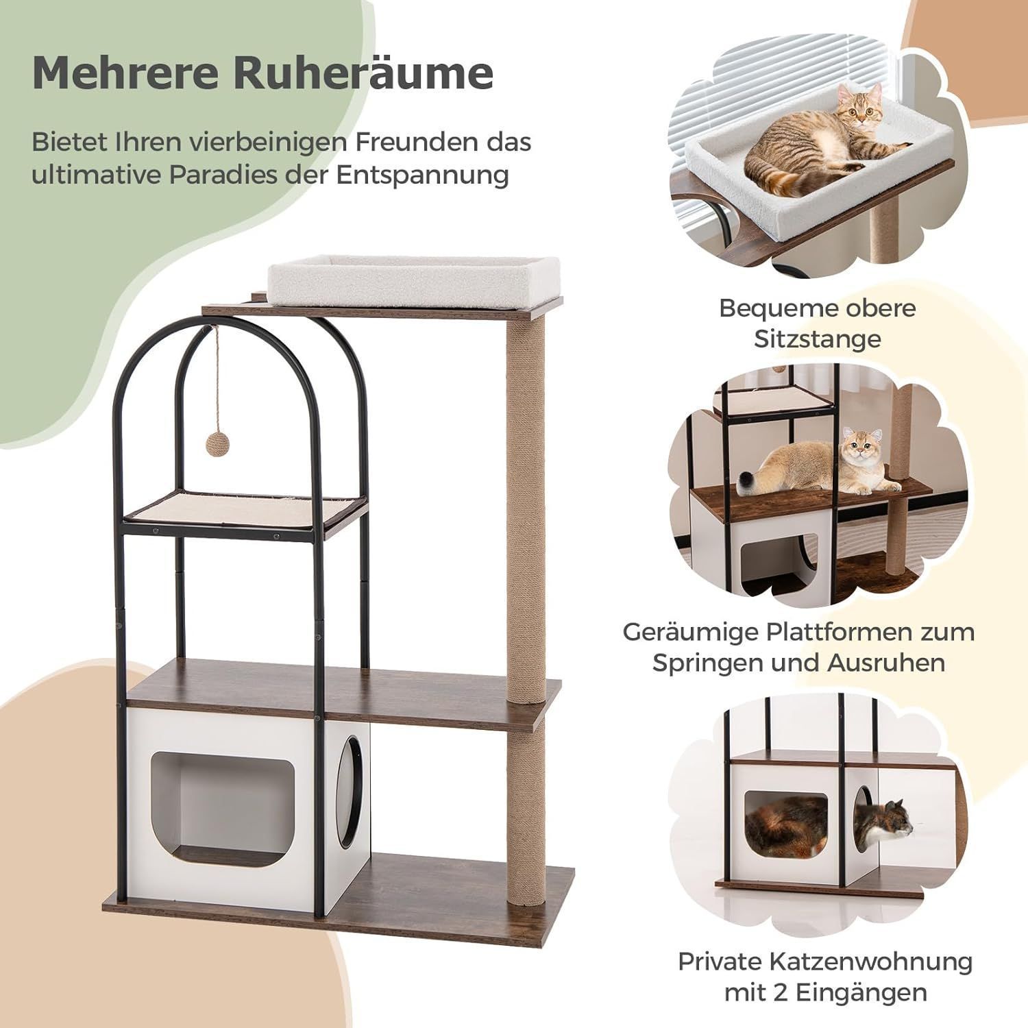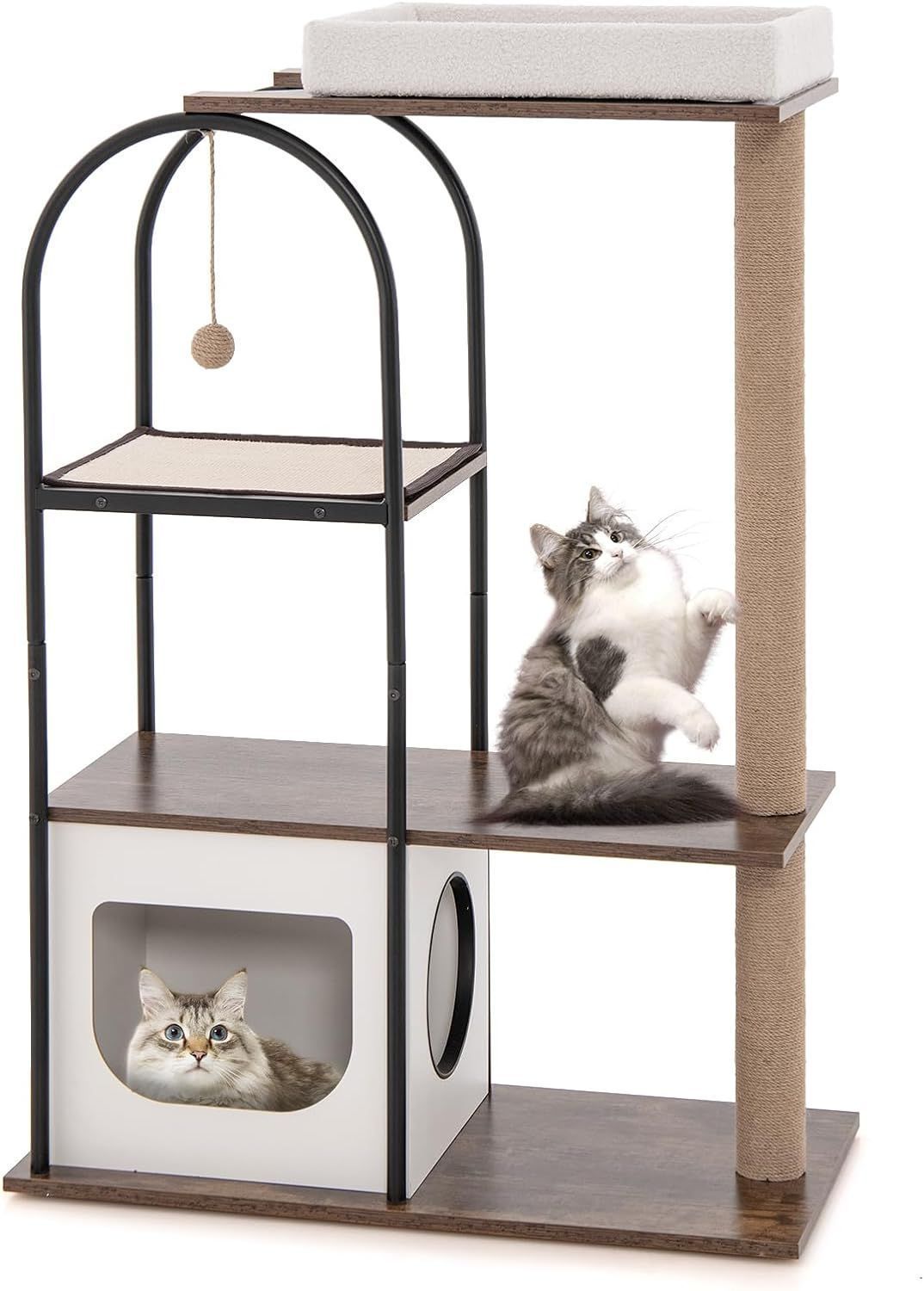 Kratzbaum mit Katzenhöhle, 118cm Katzenbaum mit abnehmbarem Katzenbett & Ball