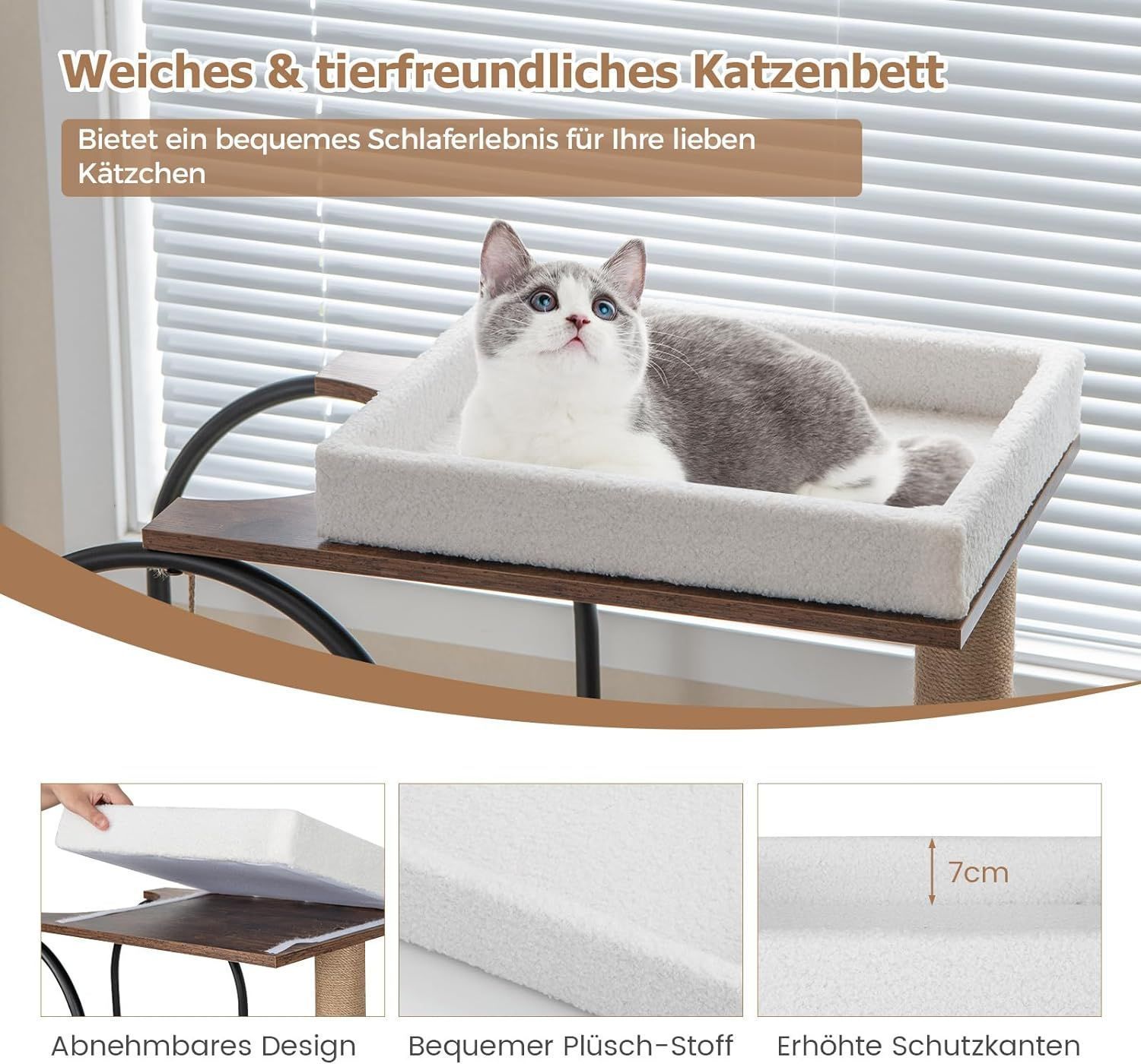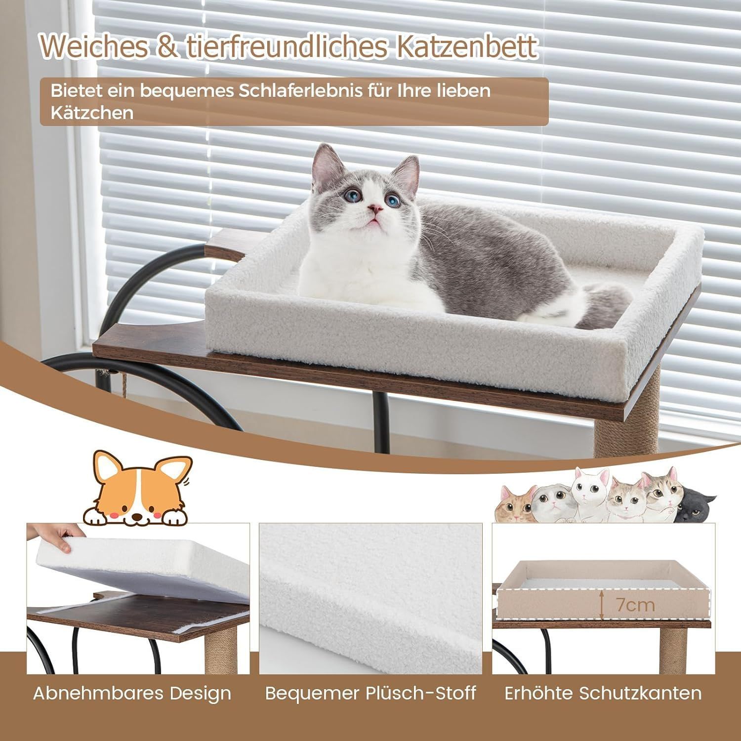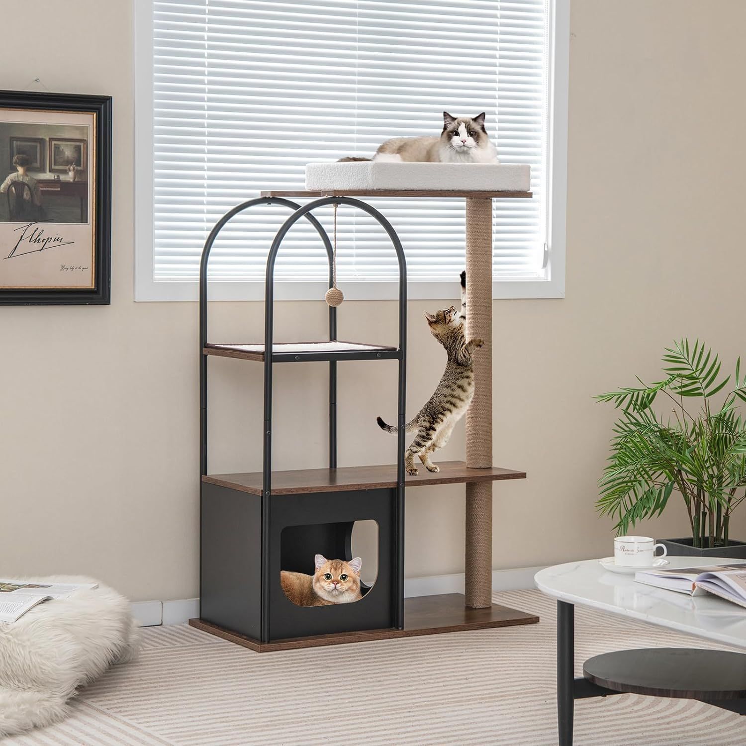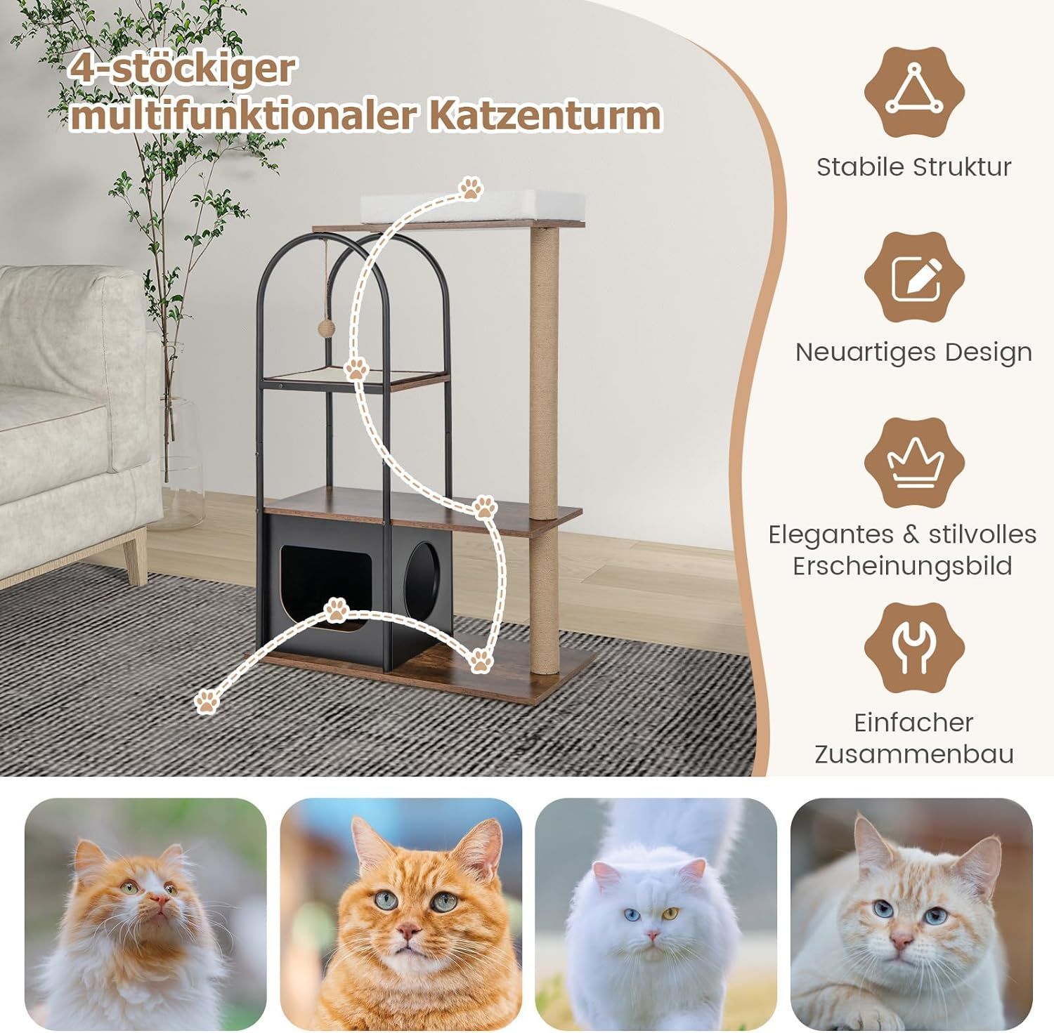 Kratzbaum mit Katzenhöhle, 118cm Katzenbaum mit abnehmbarem Katzenbett & Ball