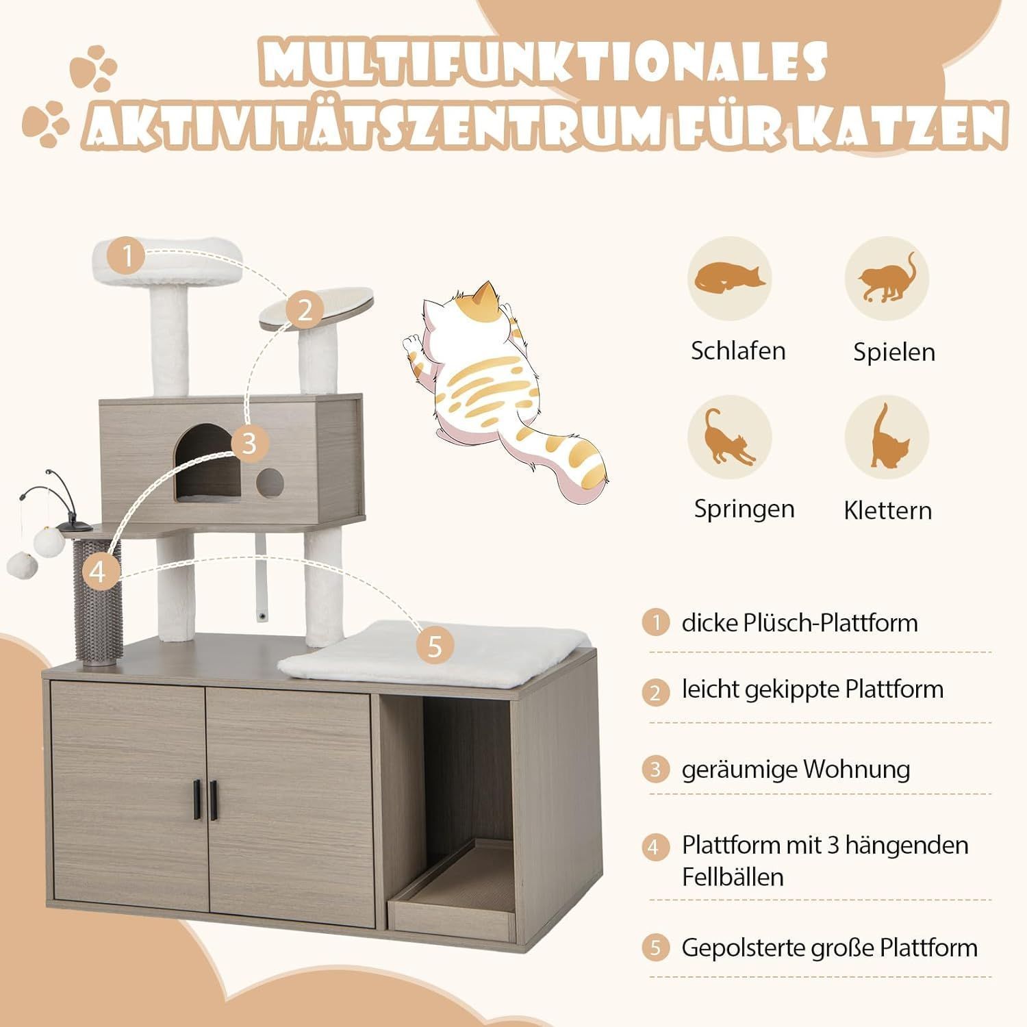 Kratzbaum mit Katzenklo, 2-in-1 Katzenbaum mit Höhle, Sitzfläche, Sisalstämmen