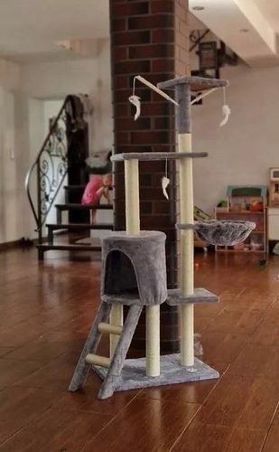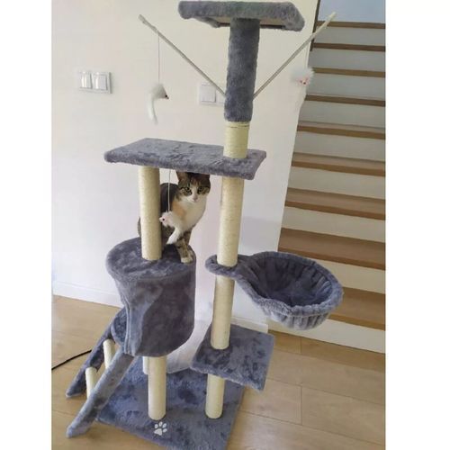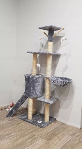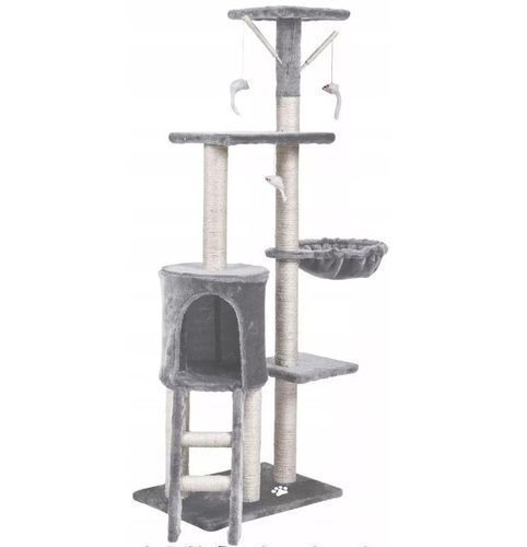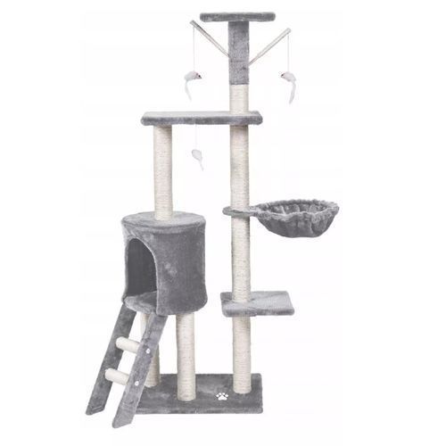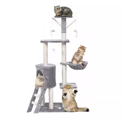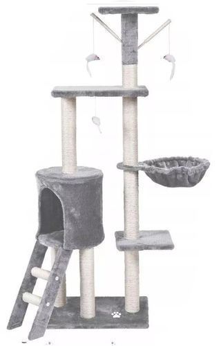 QLS Kratzbaum mit Katzenliege Leiter 138 cm XL Grau Mehrstöckiger Kletterbaum 10967