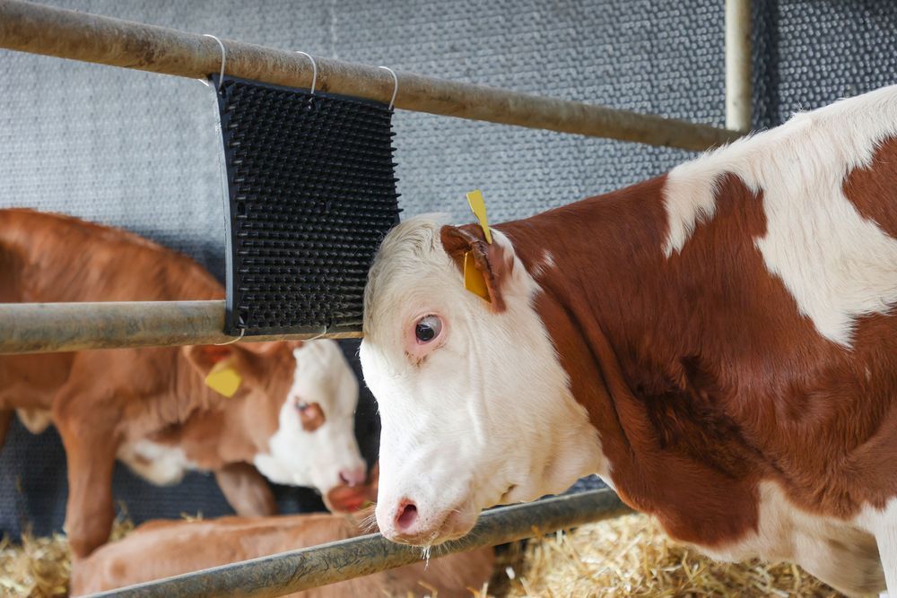 Kratzmatte 30 x 40 cm für Säulen- oder Wandmontage Pferd Kalb Kuh Stall Matte