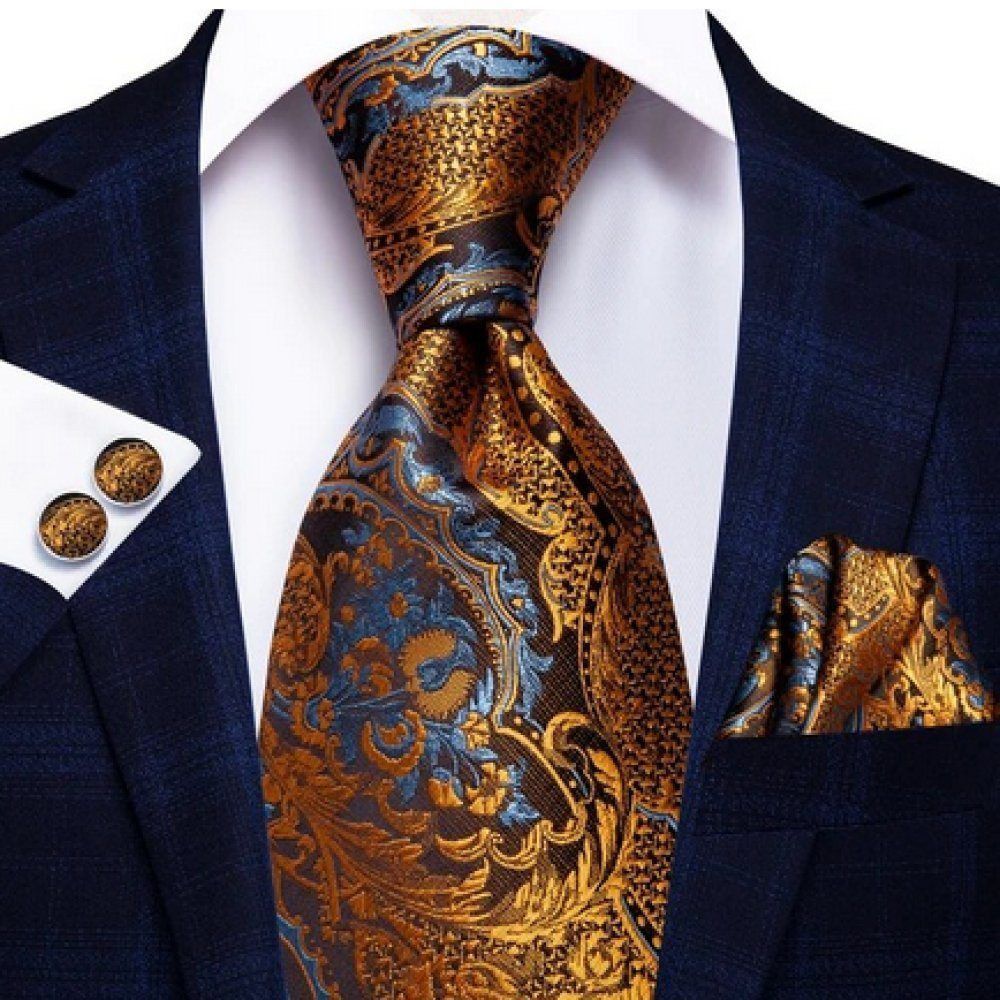 Krawatte Einstecktuch Manschettenknöpfe Seide Seidenkrawatte Schlips Binder