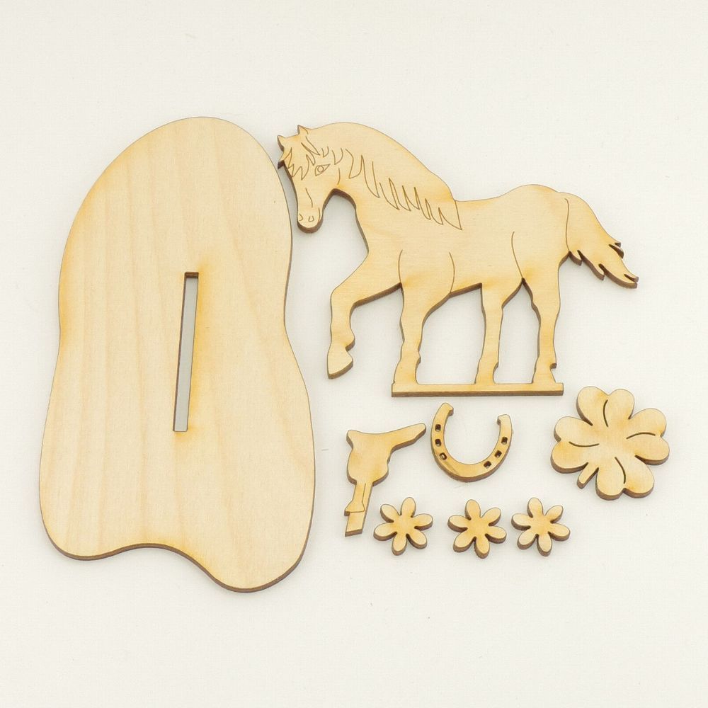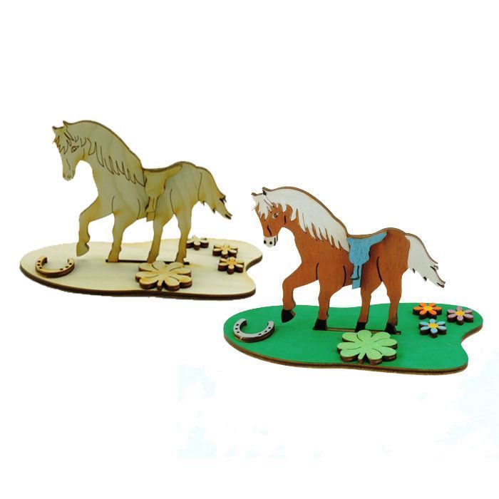 Kreativ Set für Kinder, Pferd aus Holz, zum Kindergeburtstag Bastel Set aus Holz