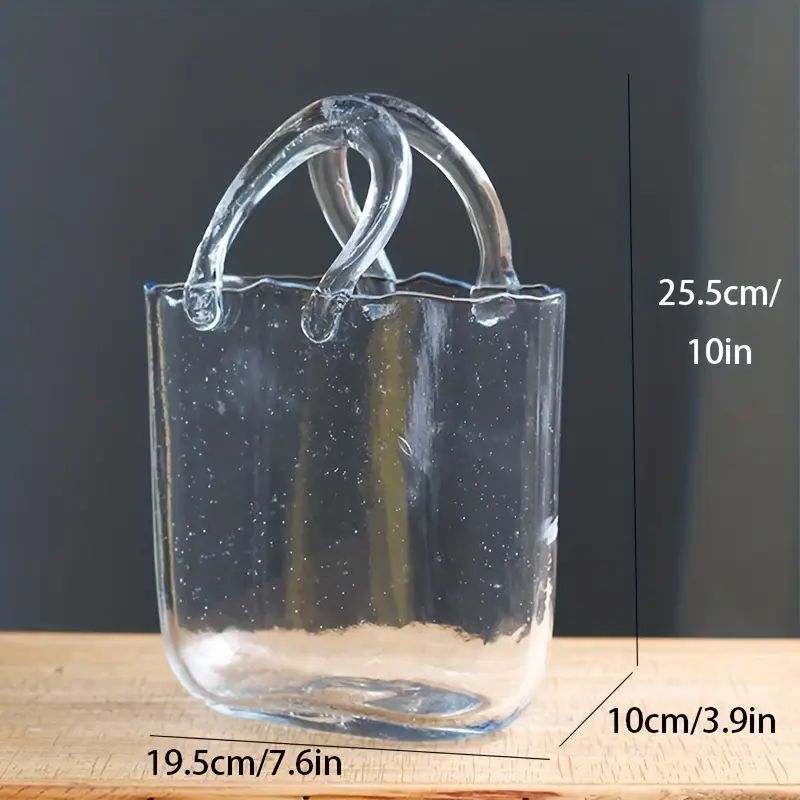 Kreative Handtaschenförmige Glasvase für Frische Blumen - Zeitgenössisches Geometrisches Design mit Klarem Blasenmuster, Rechteckig, Keine Batterie Erforderlich - Perfekt für Hydroponische Blumenarrangements & Wohnkultur, Tischdekoration Moderne Geometrische Vase Klare Glasvase, Blumenvase Produ
