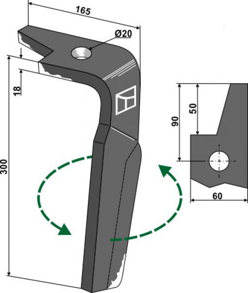 Kreiseleggenzinken, linke Ausführung RH-AMA-08L Technische Datem: Kreiseleggenzinken linke Ausführung Bestellnummer: RH-AMA-08L Gewicht: 2.920 kg Dicke: 18 mm Länge gesamt: 300 mm Breite: 60 mm Bohrung: 20 mm Ø Orig.- Nr.: 965 781 Zubehöteile: Bolzen: 16-DK032 Klappsplint: 16-ST36-A2G Artikel