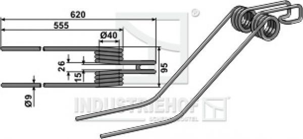 Kreiselschwaderzinken L 620 - B 95 - D 9 mm für Deutz-Fahr - Farbe Schwarz Best.-Nr. 15-DEU-15 Technische Datem: Federzinken: Schwarz Best.-Nr. 15-DEU-15 Vergl.-Nr.: 16504333 Länge gesamt: 620 mm Breite gesamt: 95 mm Zinkendurchmesser: 9 mm Durchm. der Feder 40 mm Aufnahmeöffnung: 26 mm auf 15 mm Ge