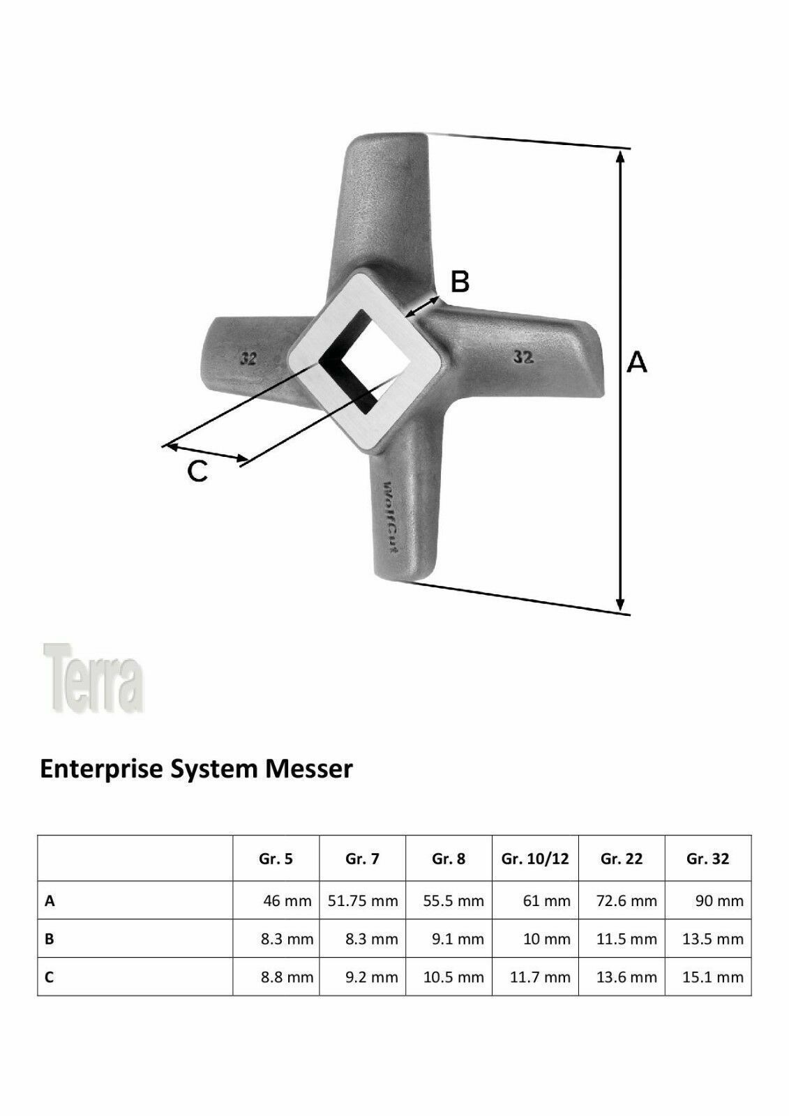 Kreuzmesser Gr. 5, Kreuzmesser Gr. 7, Kreuzmesser Gr. 8, Kreuzmesser Gr. 20/22 und Kreuzmesser Gr. 10/12