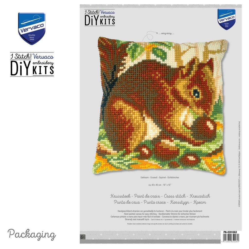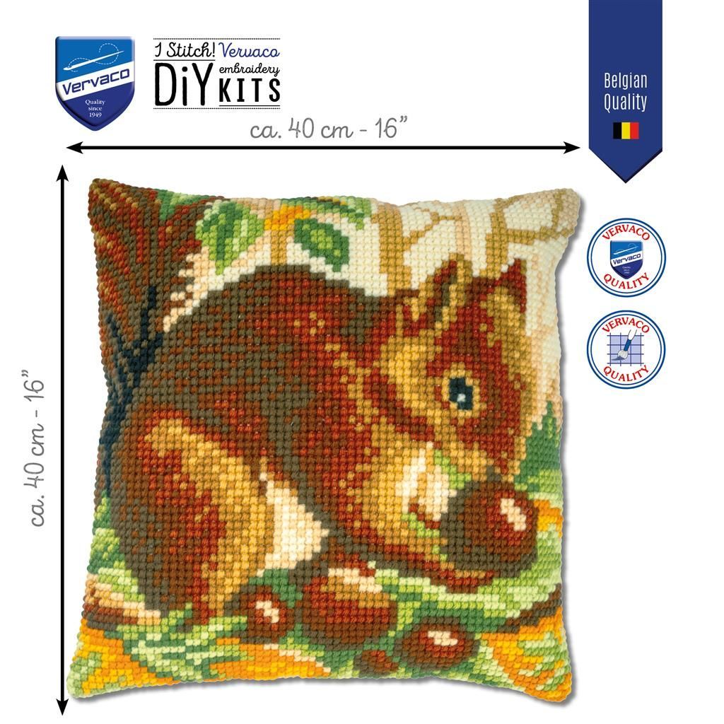 Kreuzstich-Kissen-Set Eichhörnchen - Stickbild vorgezeichnet
