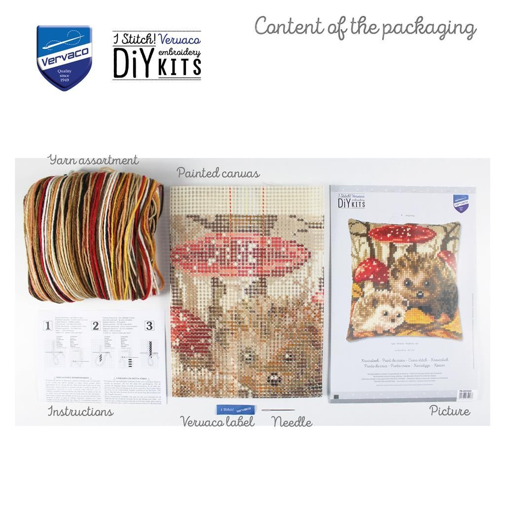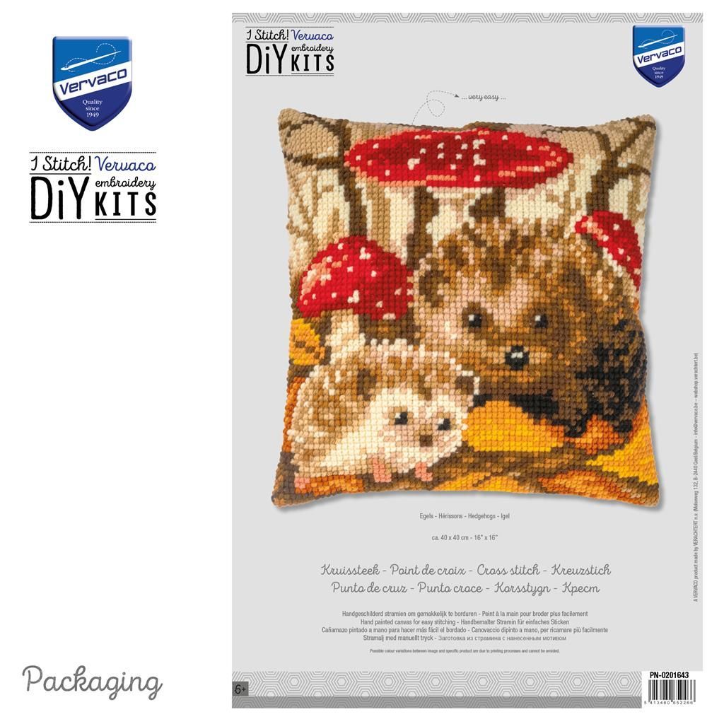 Kreuzstich-Kissen-Set Igel - Stickbild vorgezeichnet