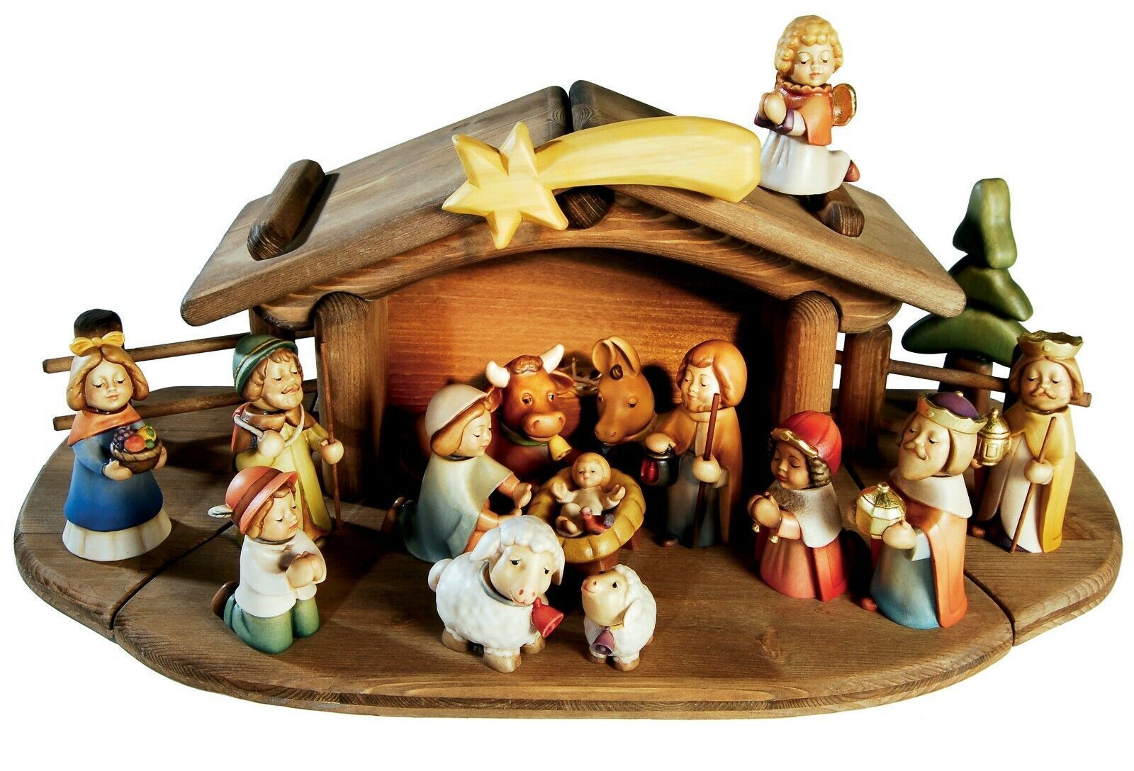 Krippe mit Krippenfiguren Aurora Kollektion Heilige Familie Holzfiguren Statuen