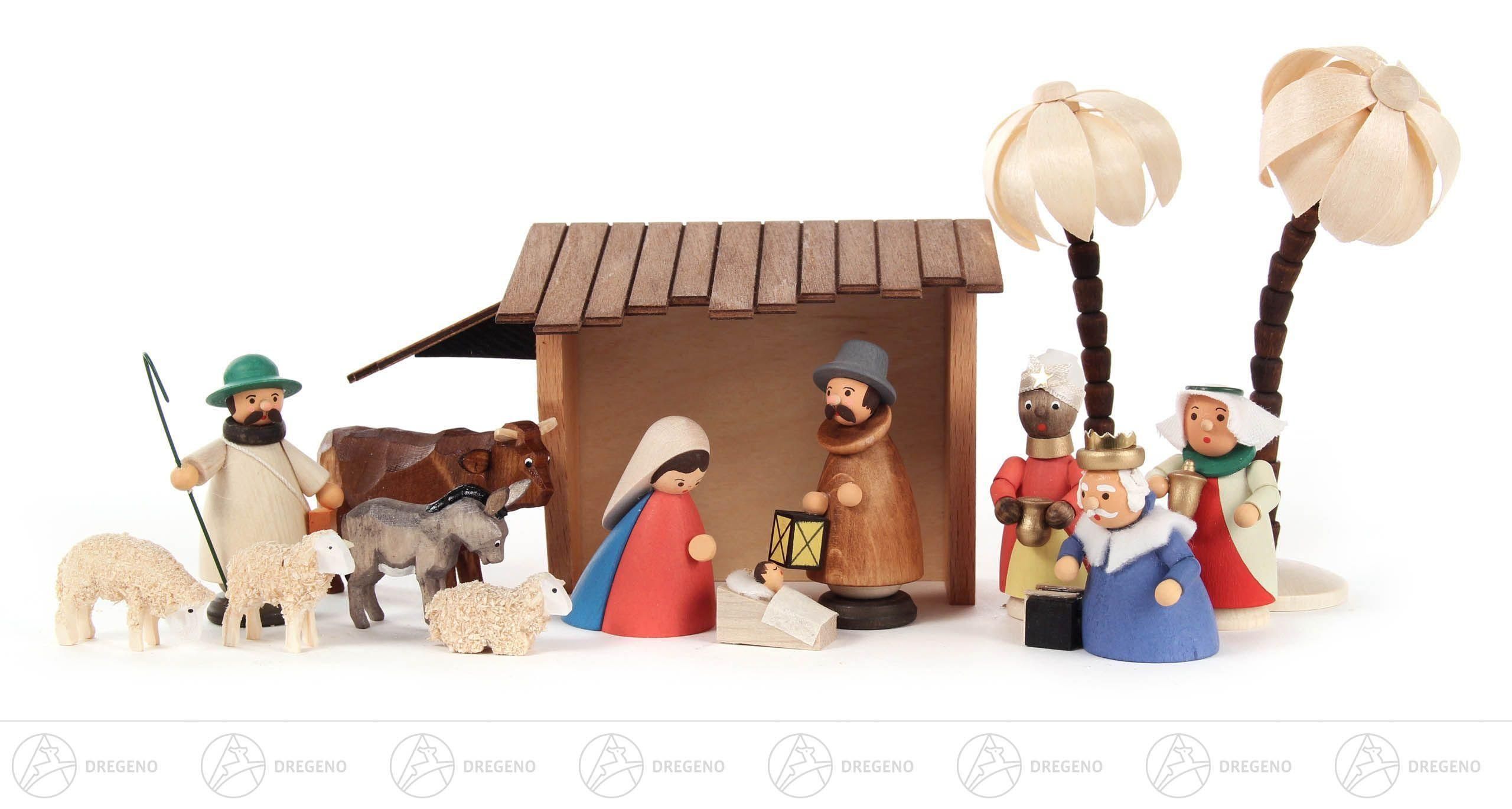 Krippen und Zubehör Weihnachtskrippe mit Stall, farbig (15) 3,5 cmx5,5 cmx3 cm