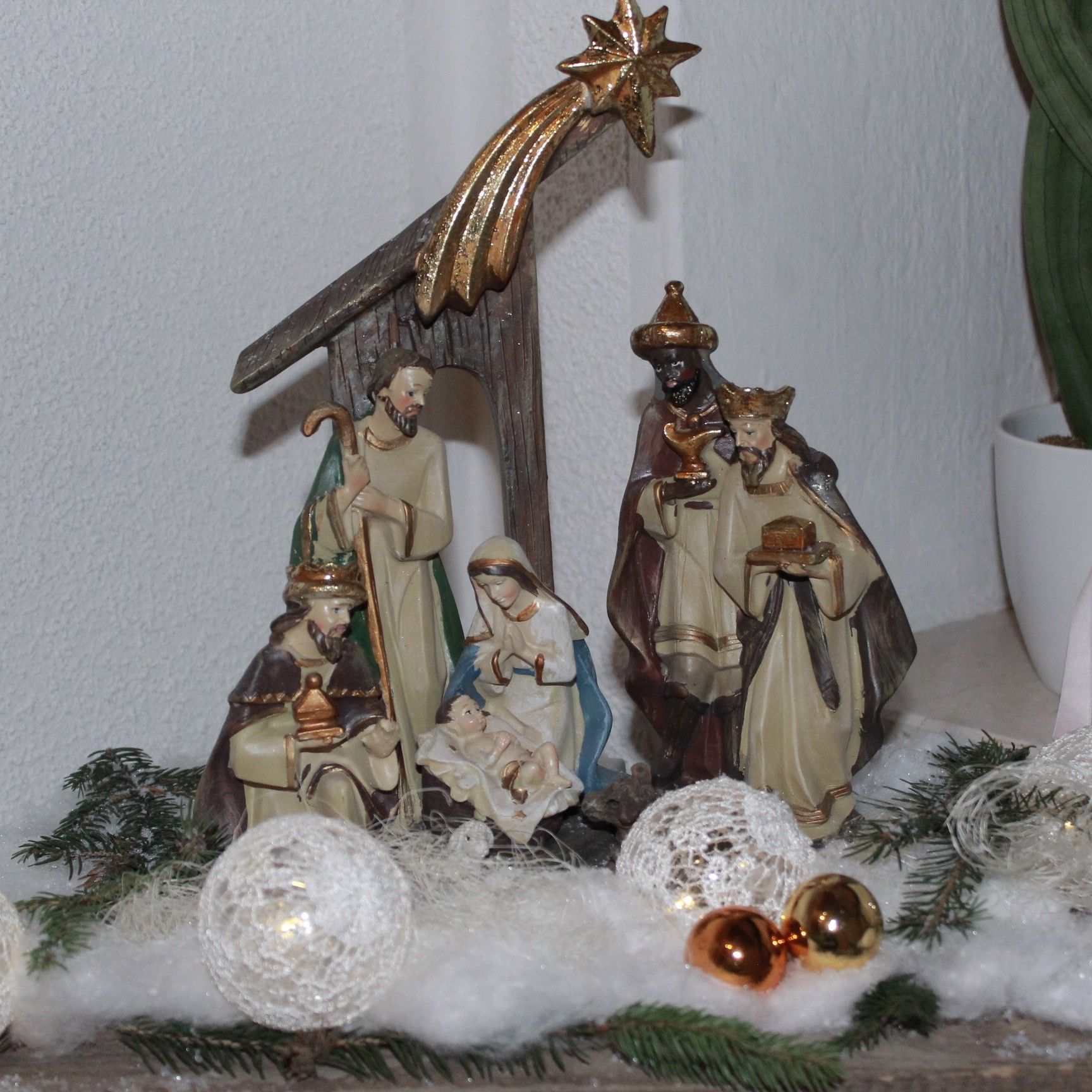Figur Jesu Christi Geburt Deko-Figur Größe: 28 x 23 x 7 cm Material: Polyresin Krippenfiguren set Sternschnuppe Jesuskind Josef Maria Weisen Schaf