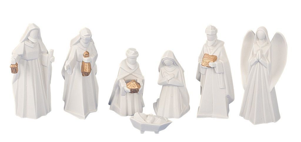 Krippenfiguren 7 teiliges Set Weiß Gold Krippe Weihnachten