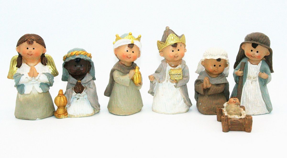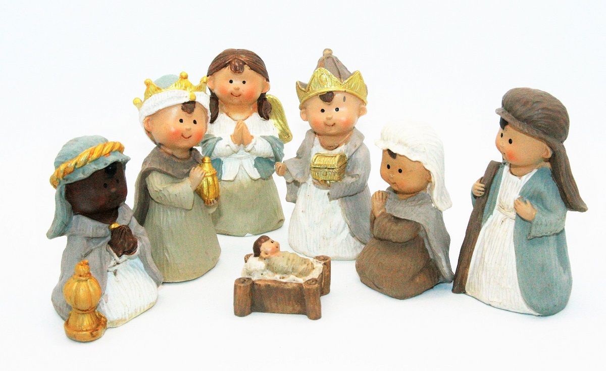 Krippenfiguren Set 7-teilig Kindergesichter Krippe Weihnachten