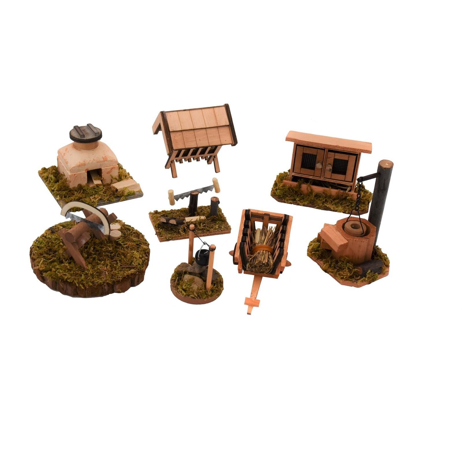Krippenzubehör Holz 8-teilig Miniatur 4 - 9 cm Krippe Zubehör