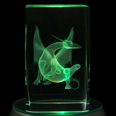 • Kristall Quader Motiv Drache Farbe klar