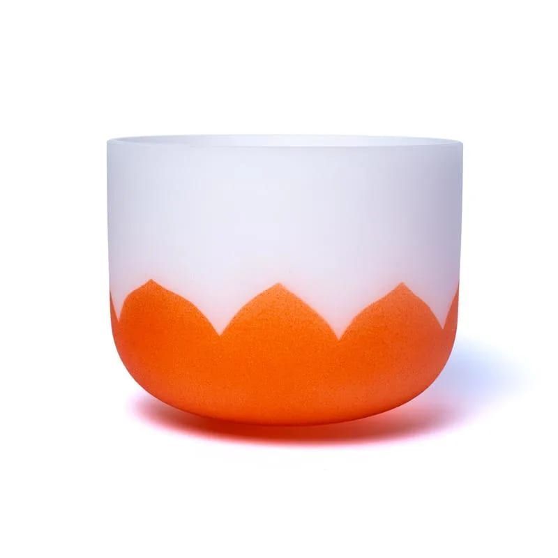 Kristallklangschale Lotus Ø 30 cm Chakra 2 orange D-Ton 432 Hz Ring + Schlägel