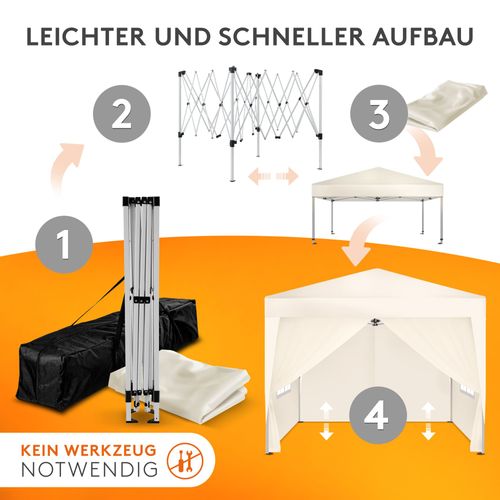 Kronenburg Faltpavillon wasserdicht Gartenzelt 2x2m champagner mit 4 Seitenteilen