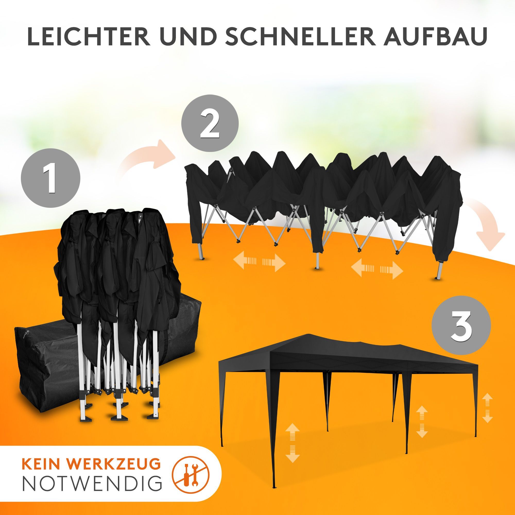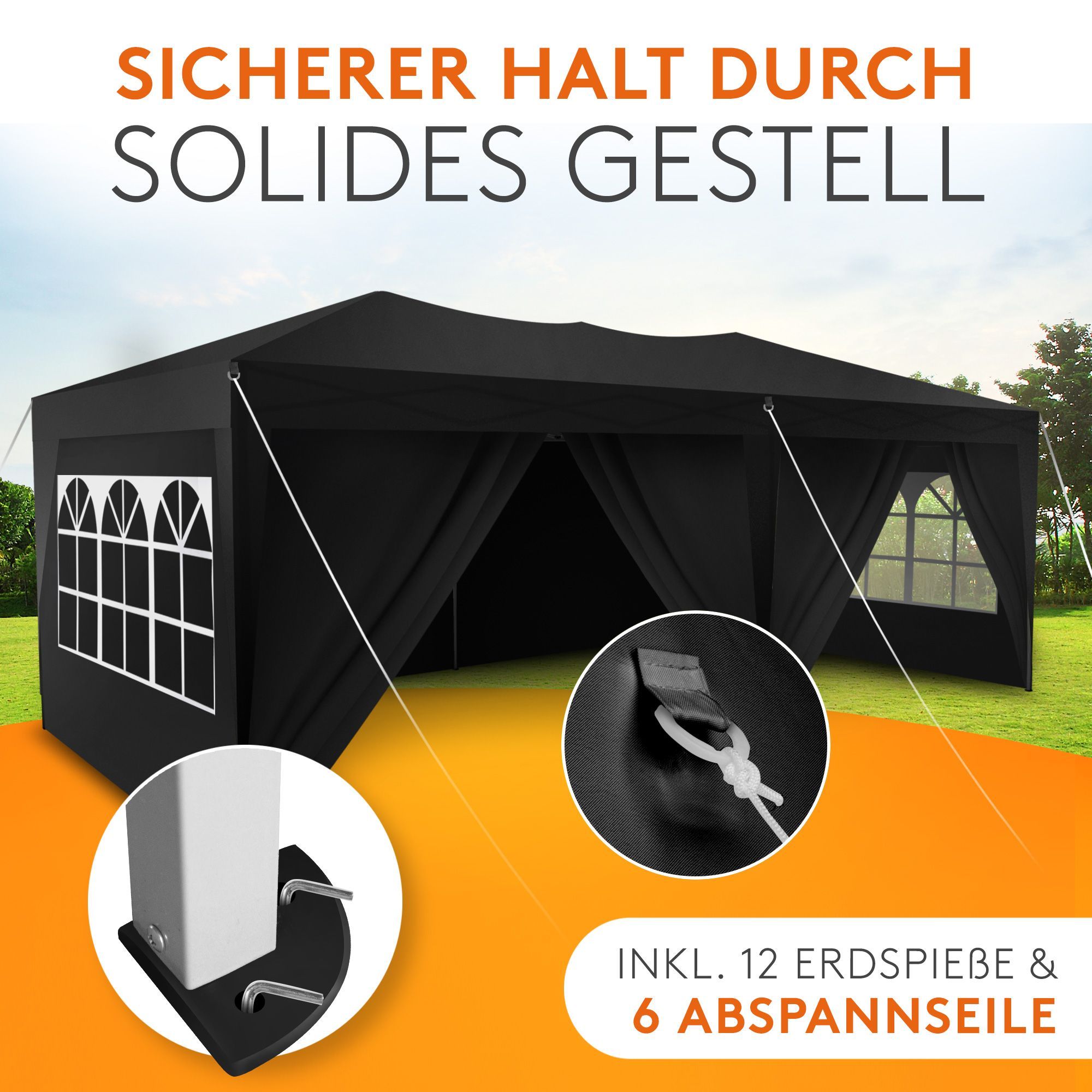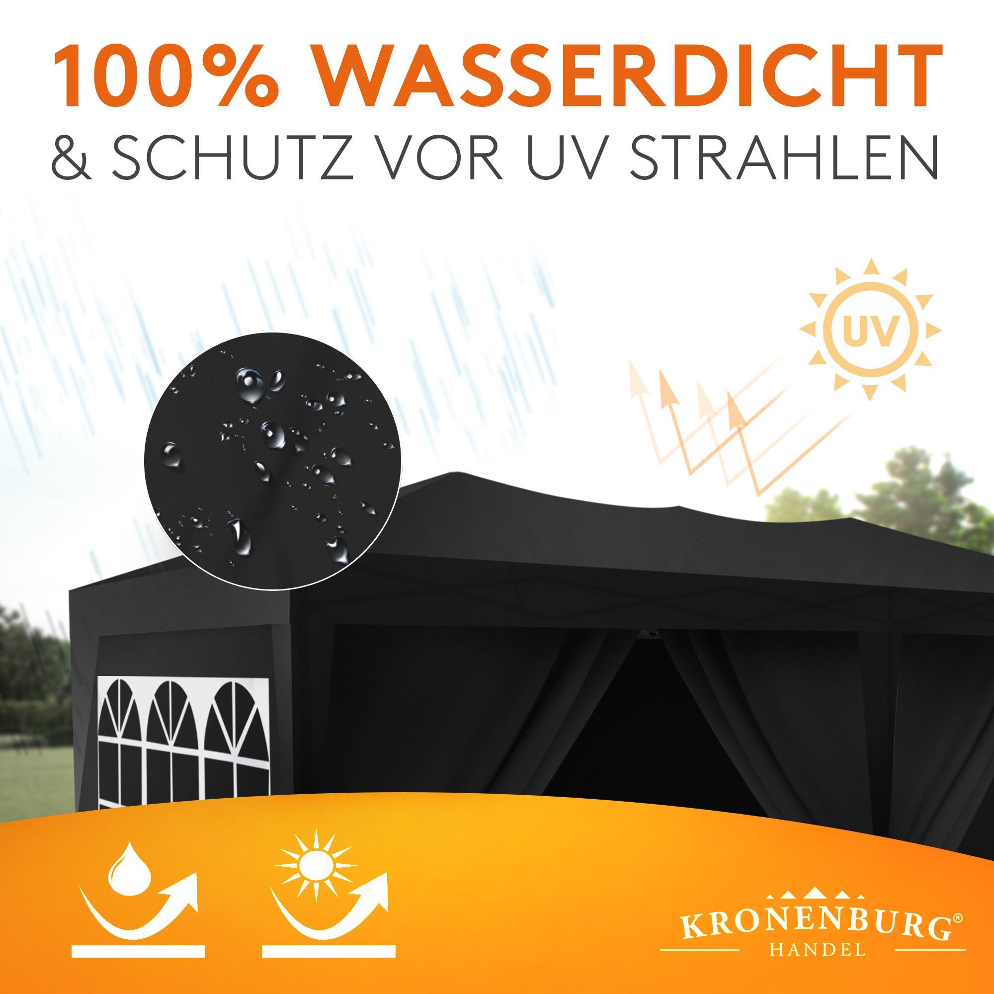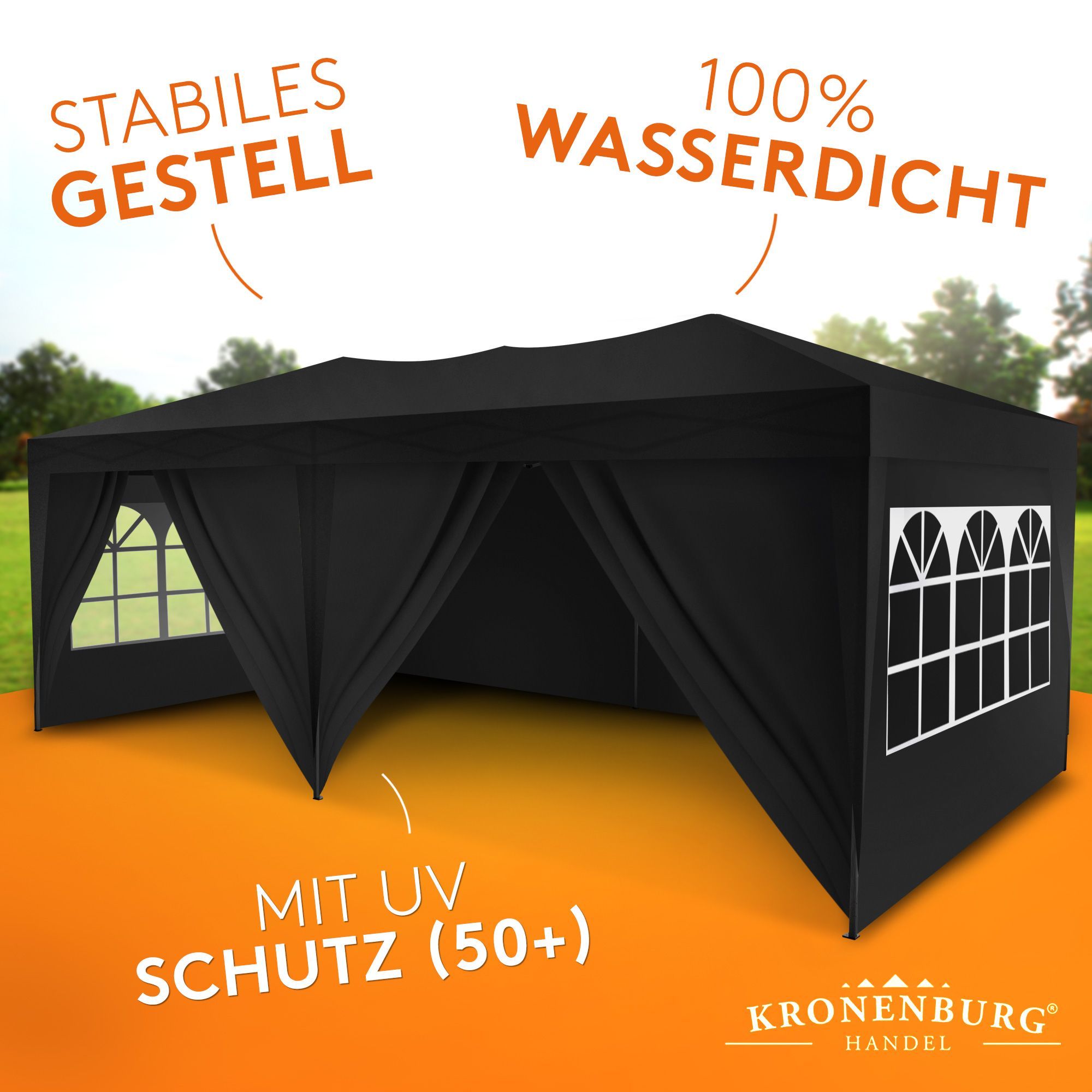 Kronenburg Faltpavillon wasserdicht Gartenzelt 3x6m UV-Schutz schwarz 6 Seiten