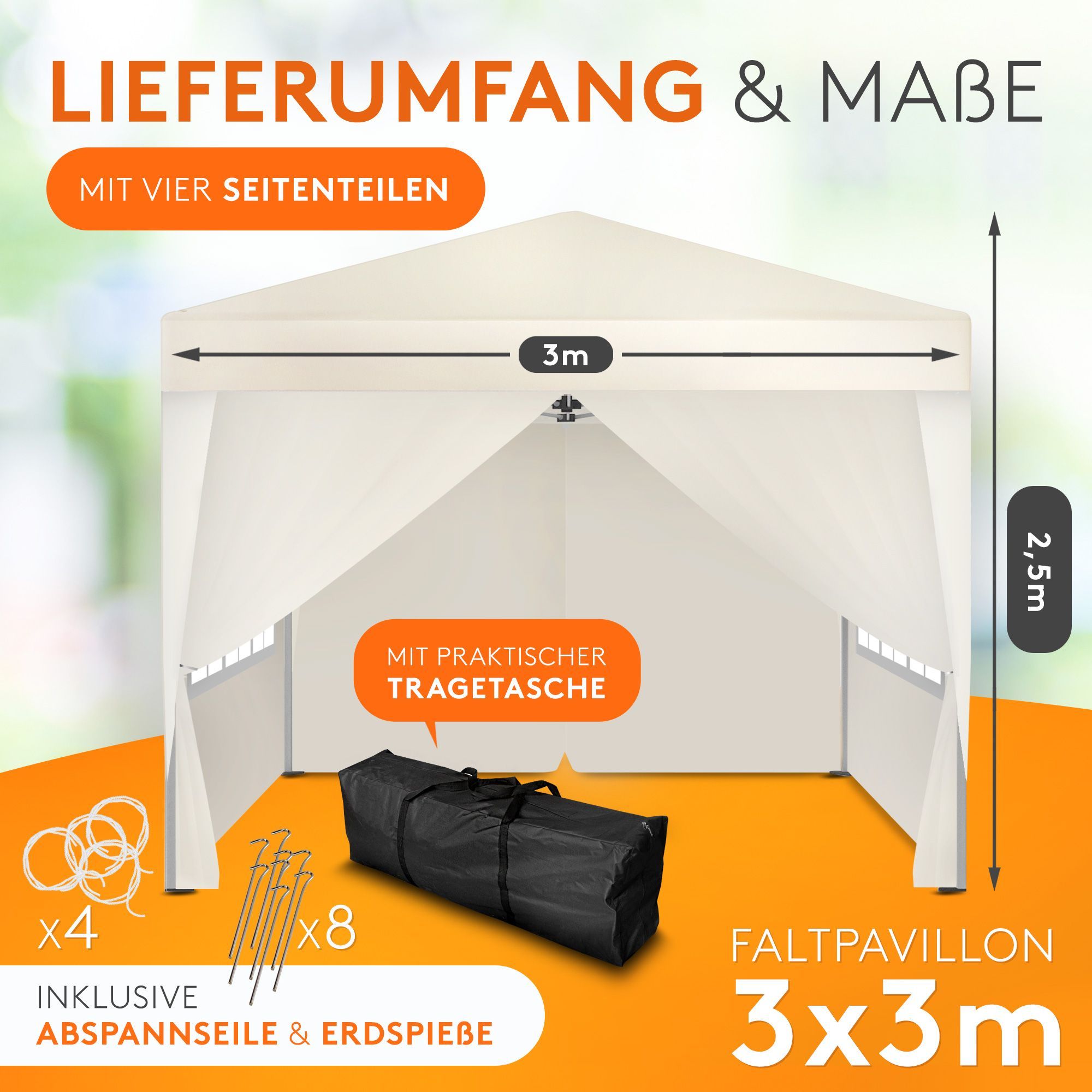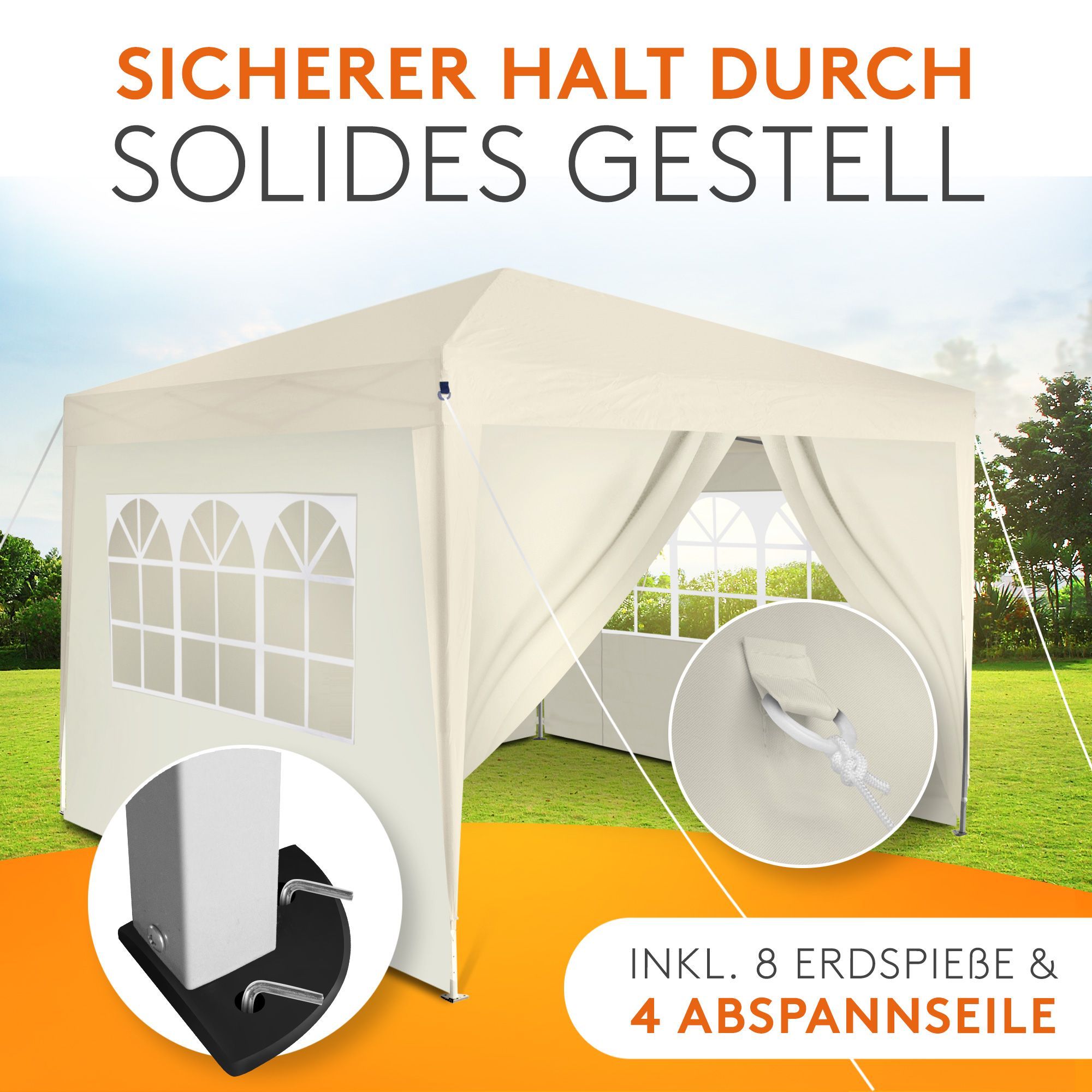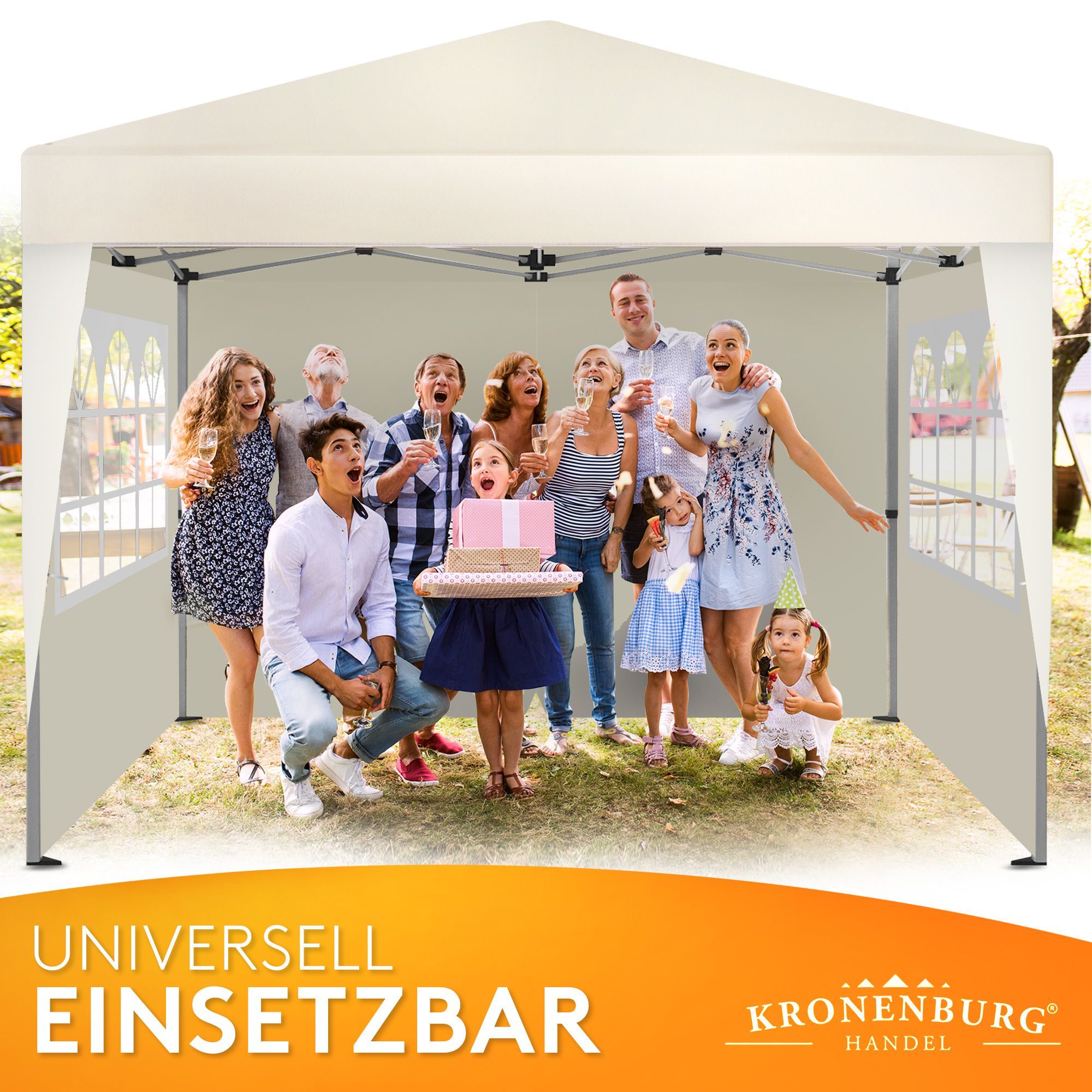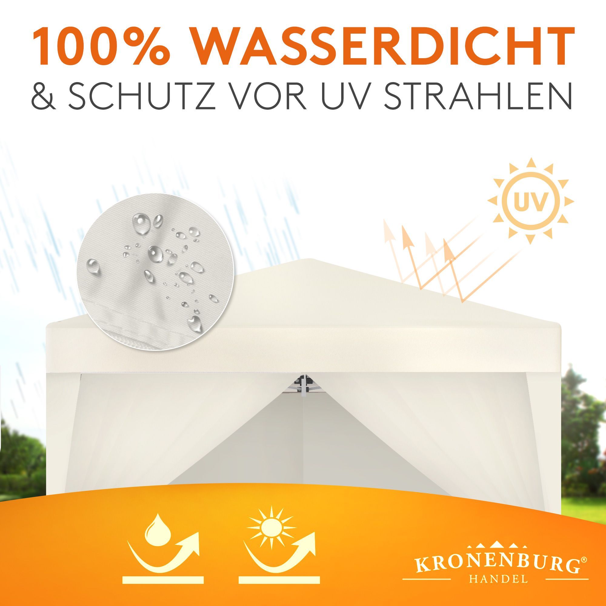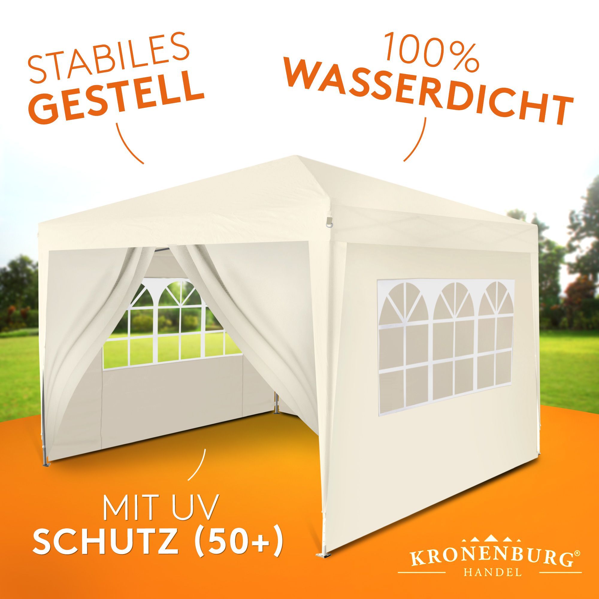 Kronenburg Faltpavillon wasserdicht Gartenzelt Dachmaß 3x3m champagner + 4 Seiten