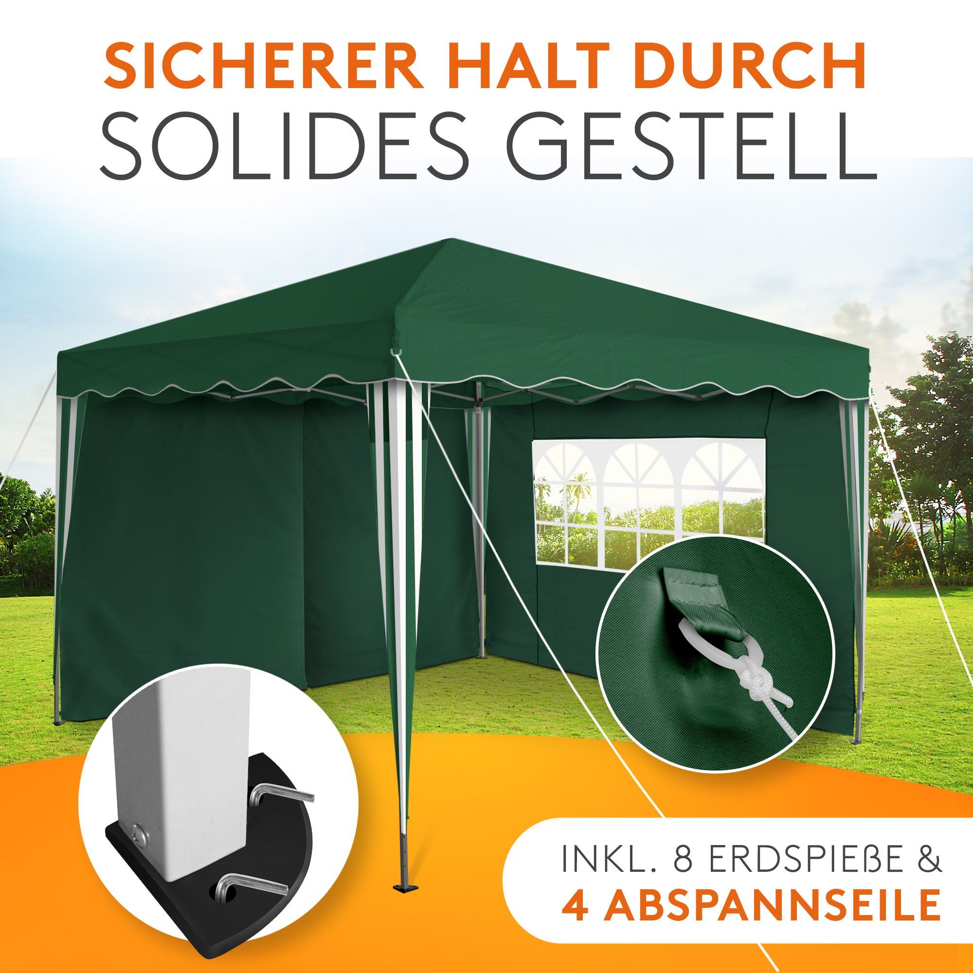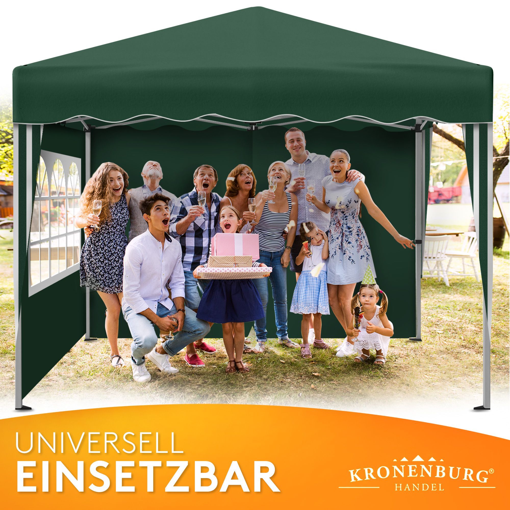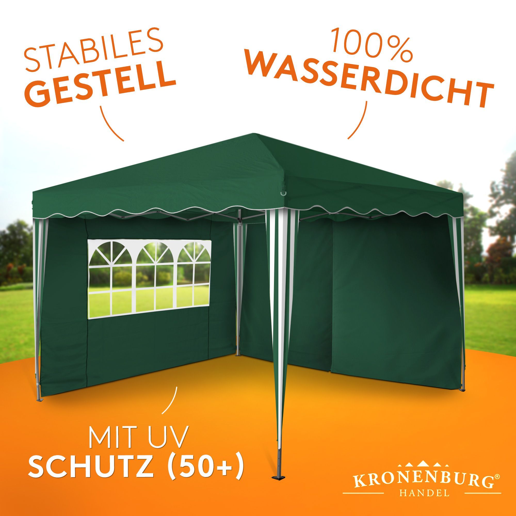 Kronenburg Faltpavillon wasserdicht Gartenzelt Dachmaß 3x3m grün mit 2 Seitenteilen