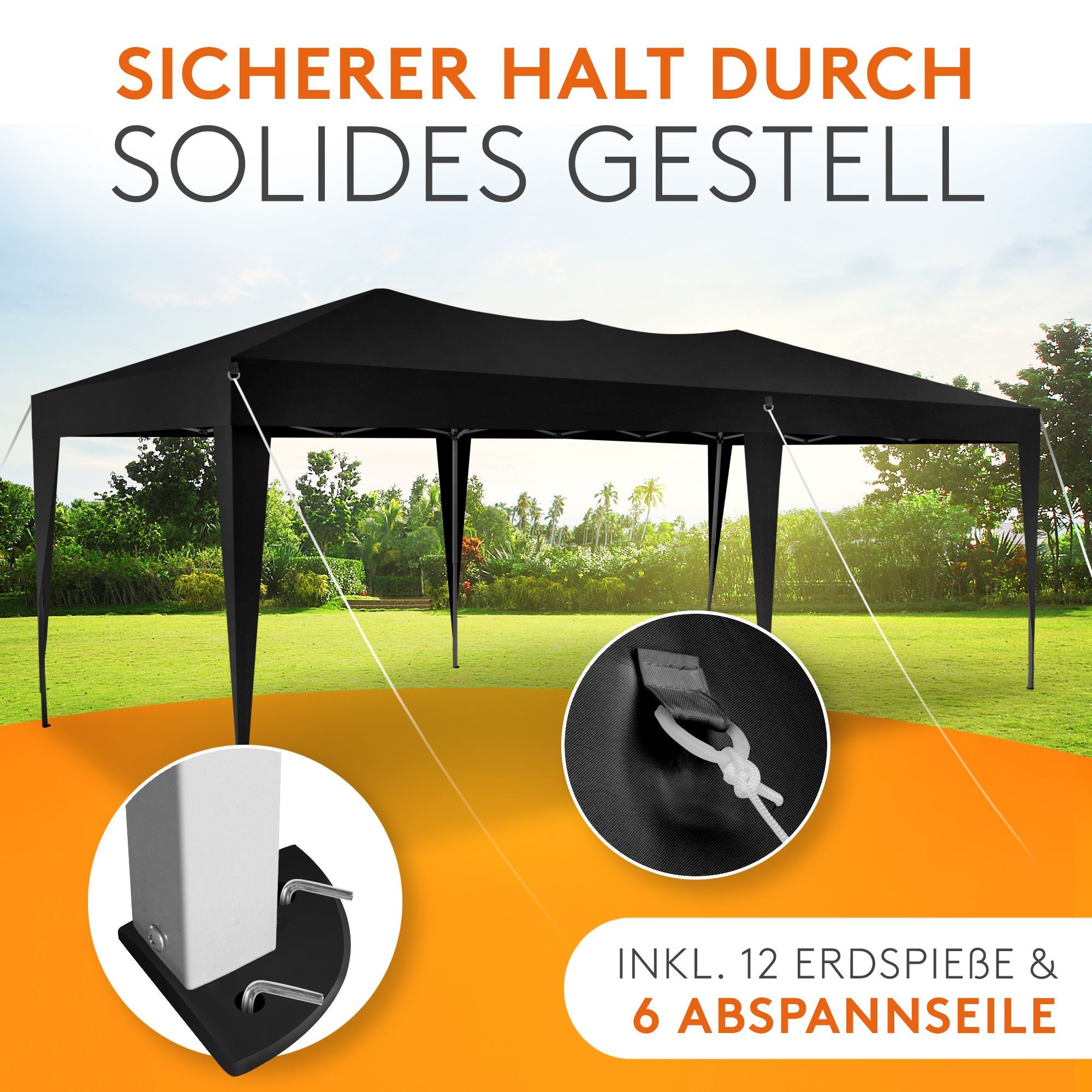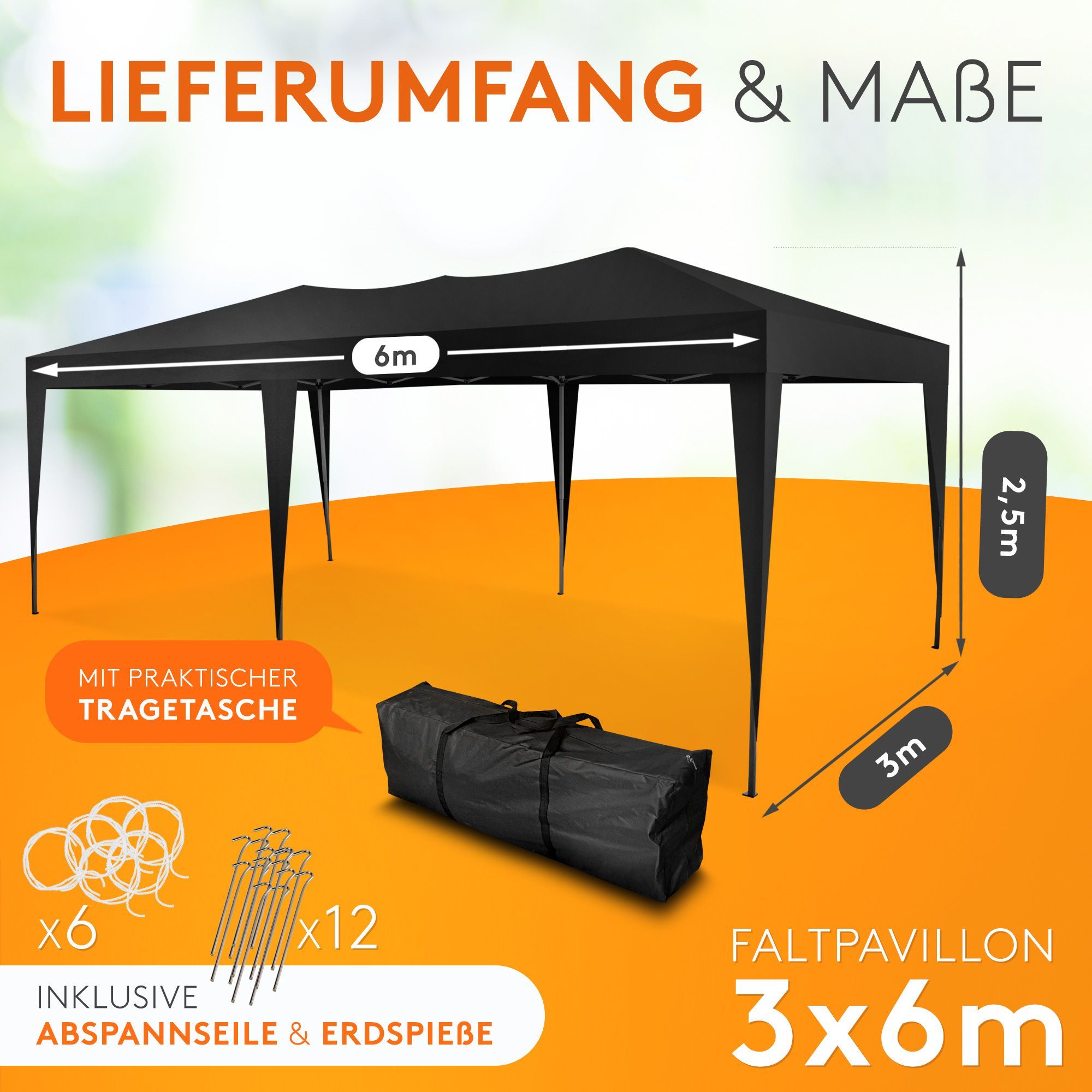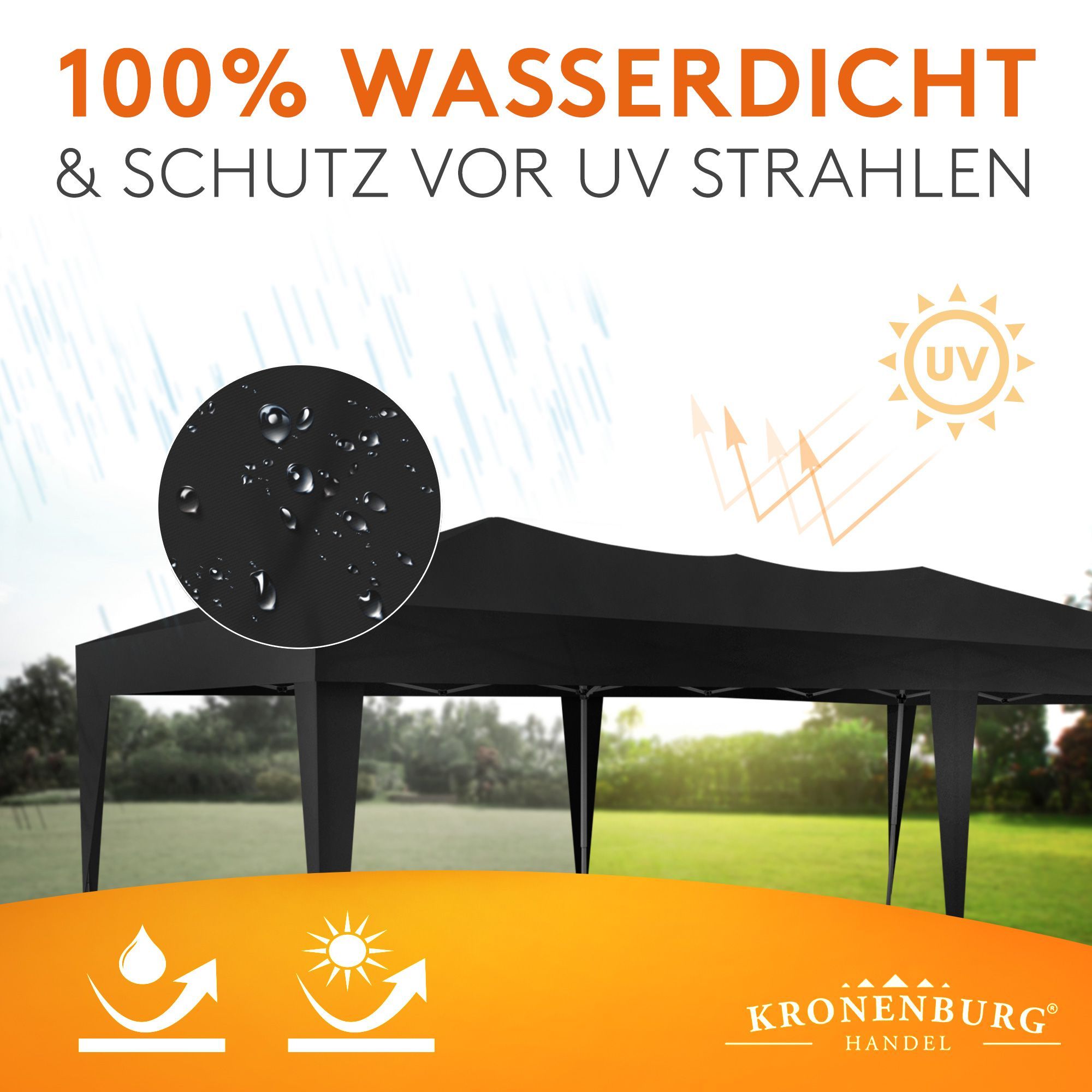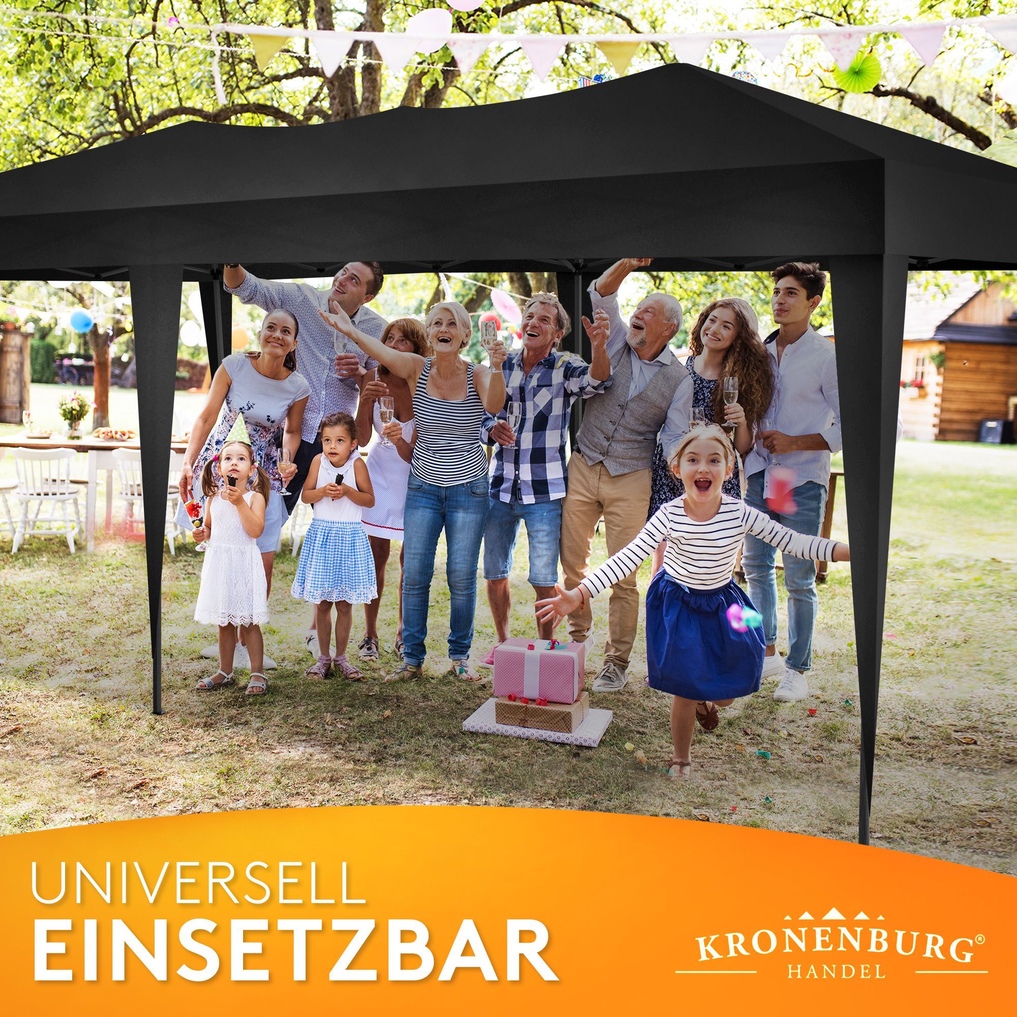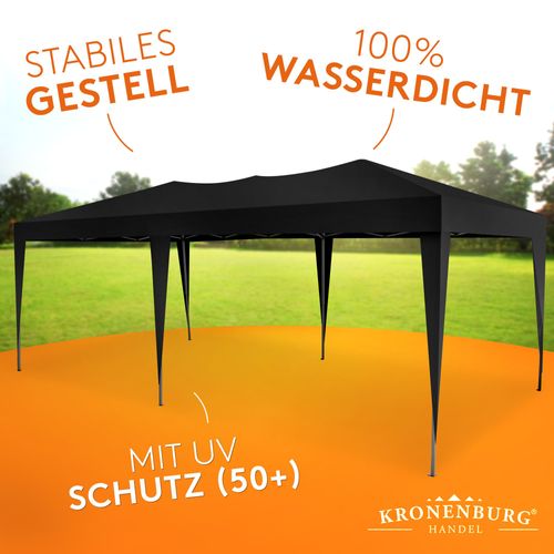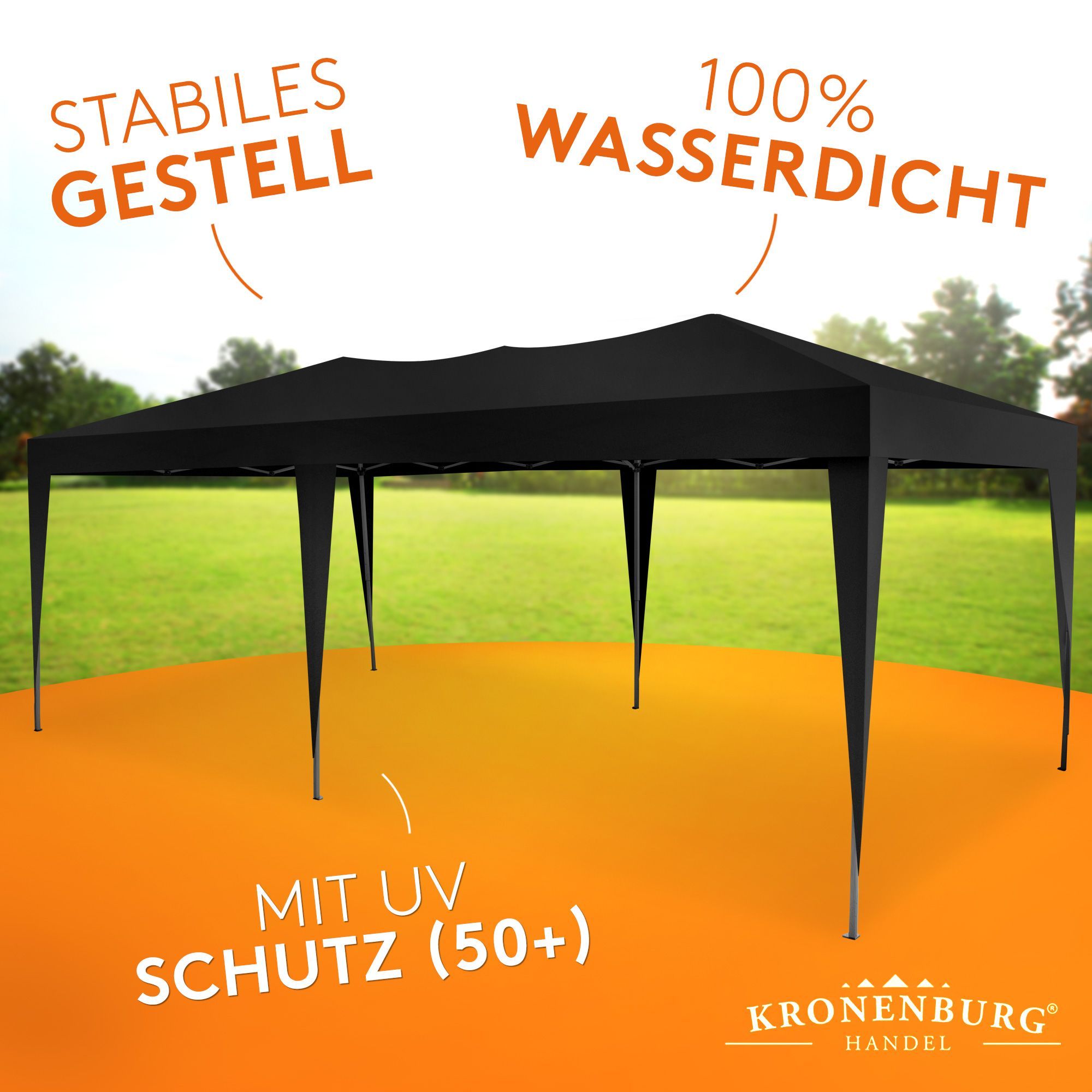 Kronenburg Faltpavillon wasserdicht Pavillion Gartenzelt Dachmaß 3x6m schwarz