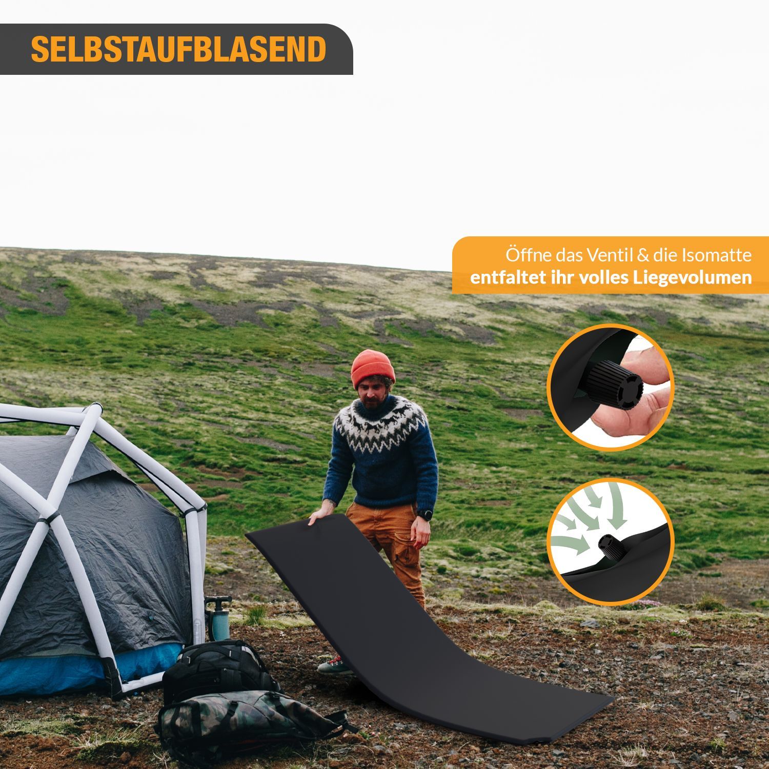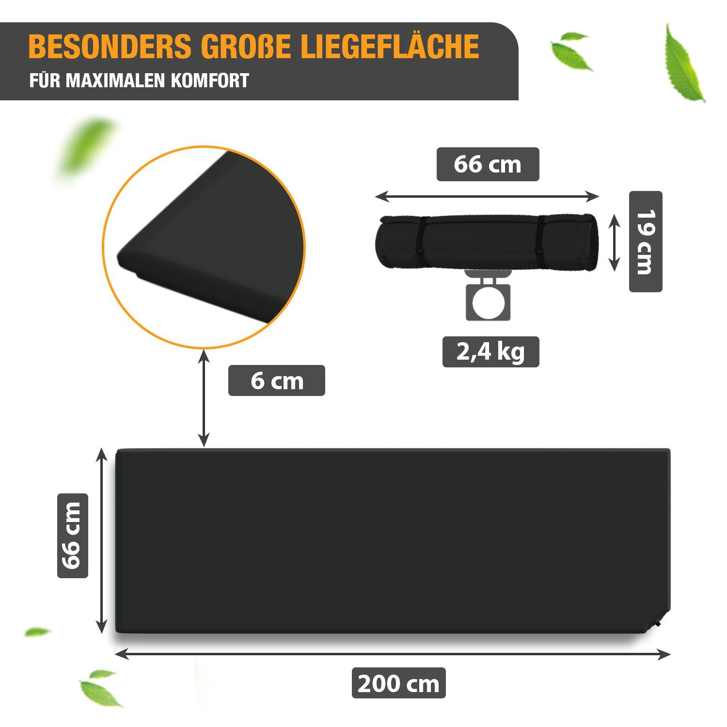 Kronenburg Isomatte selbstaufblasend 200 x 66 x 6 cm Luftmatratze Luftbett schwarz