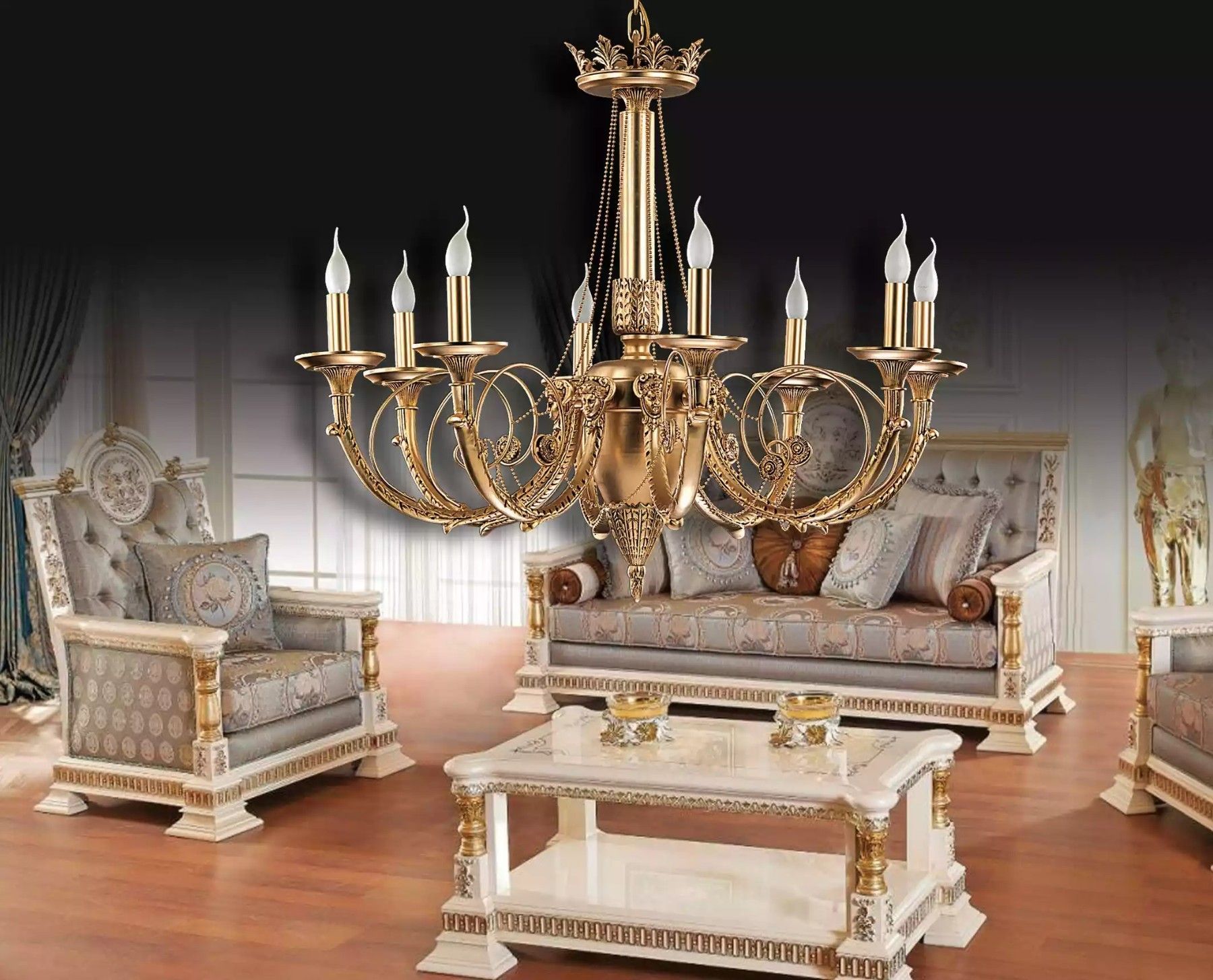 Kronleuchter Gold Leuchten Lampen Wohnzimmer Luxus Deckenleuchten 95x125