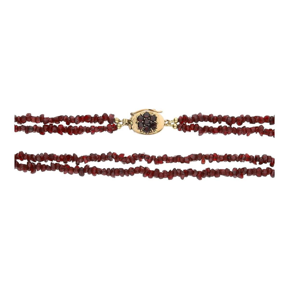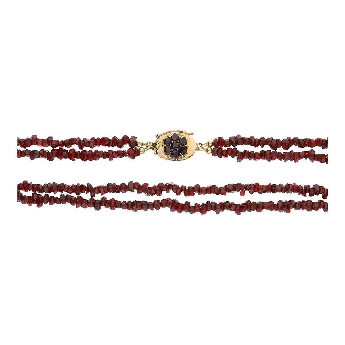 Kropfkette 585 Gold Verschluss Handarbeit mit Granat getragen 5321751