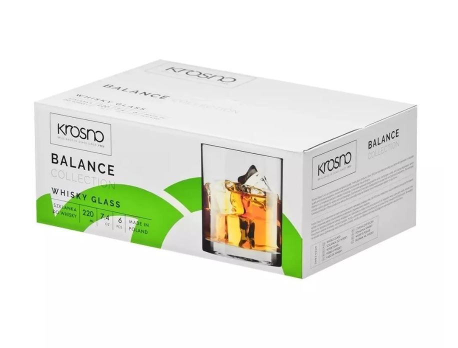 Krosno Balance Whiskygläser Trinkgläser Whisky Becher Set von 6 220 ML