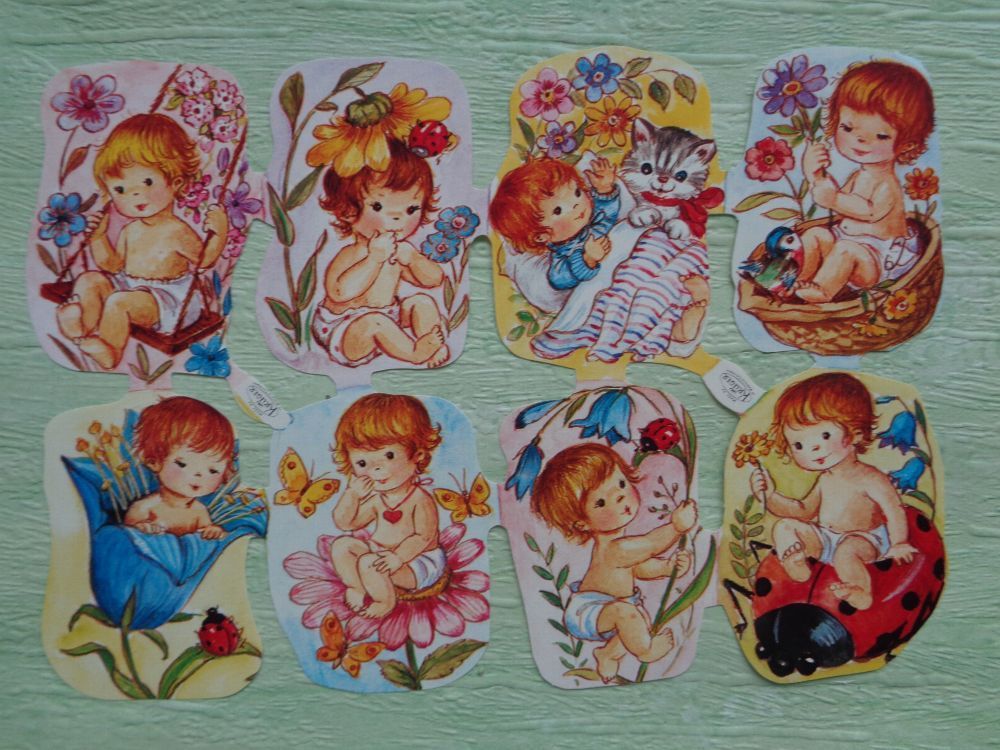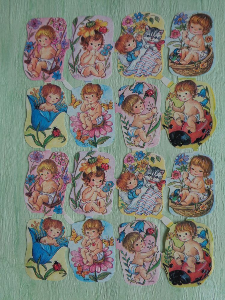 Krüger alter Glanzbilderbogen 171/280 gr : Kinder BABYS & Blüten