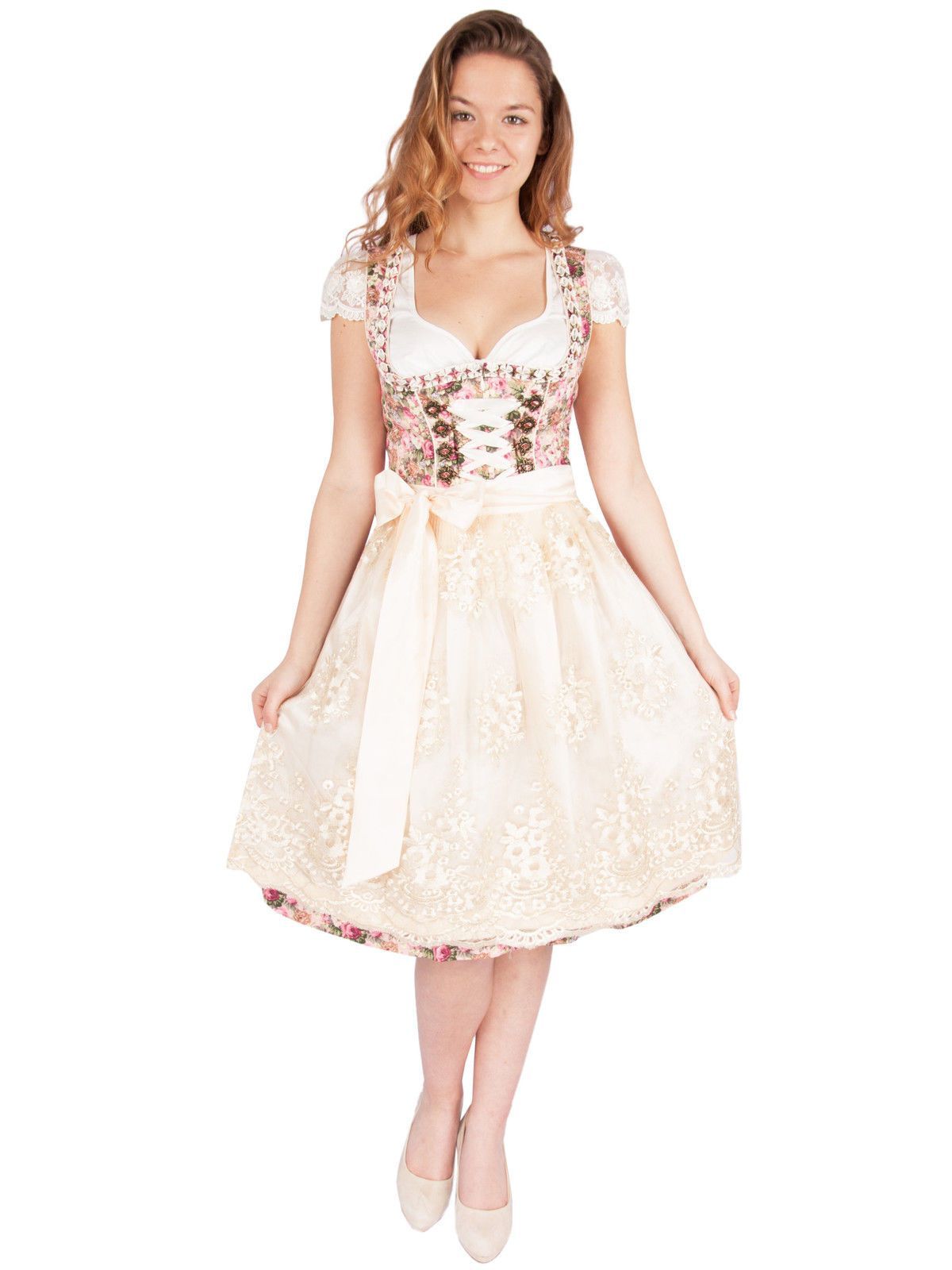 Krüger Dirndl Blumenzauber 60er Länge rose - Größe: 38